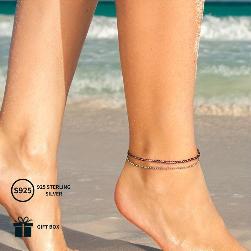 Elegant double layered anklet with natural amethyst and purple spinel for a lovely outing look. Made of high-quality S925 Sterling silver, this anklet is perfect for any occasion.
