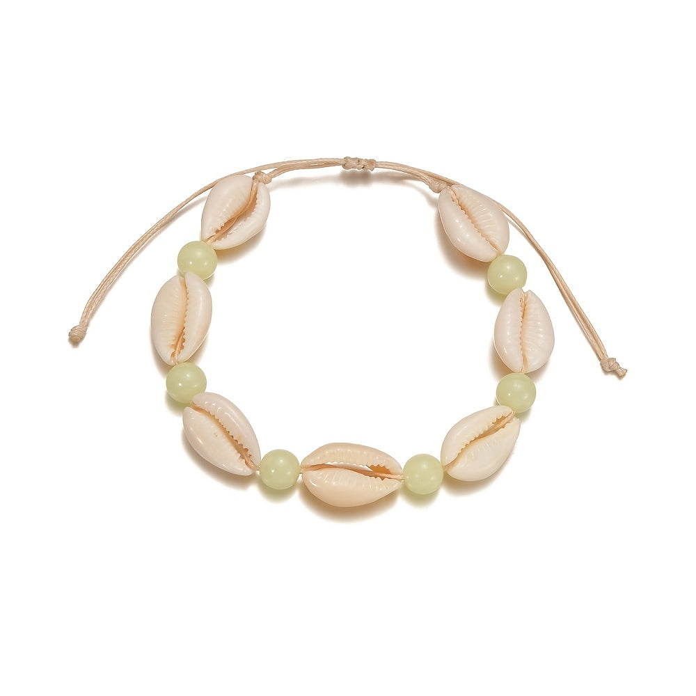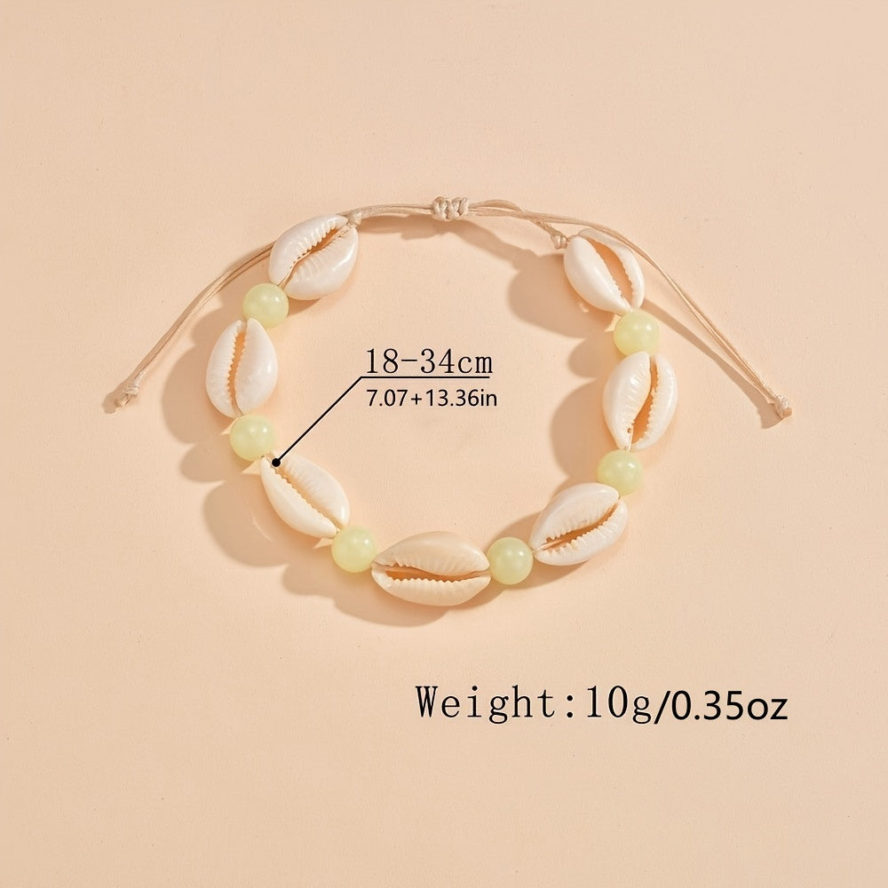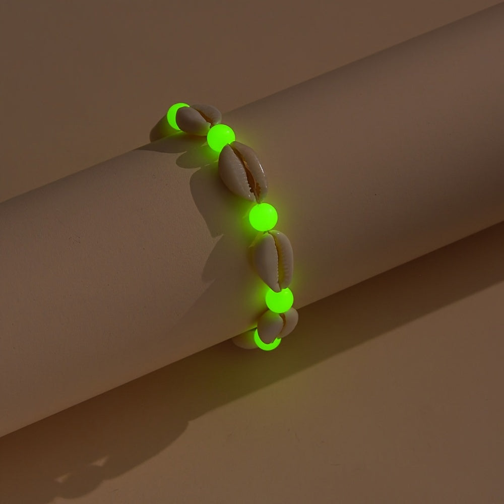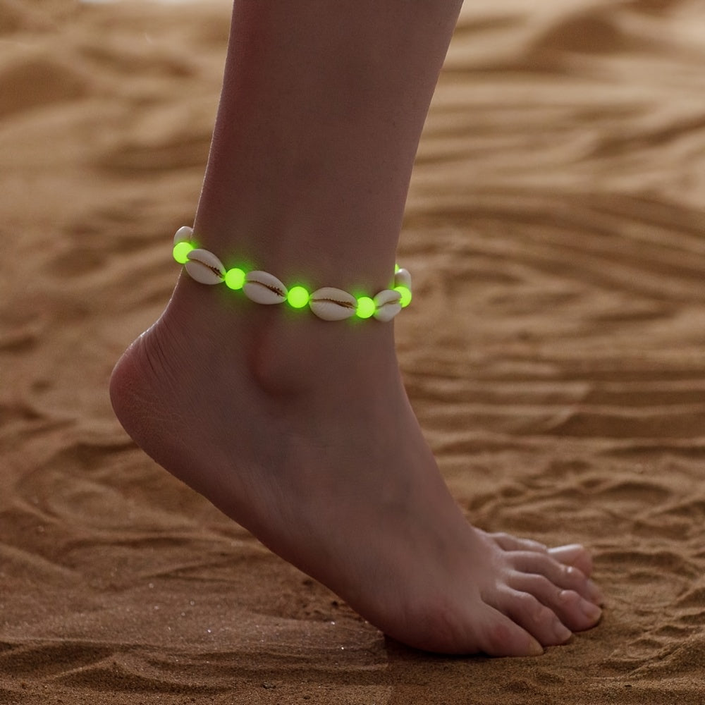 Embrace your boho style with this luminous beaded anklet featuring a shell shape design. Perfect for the beach or casual summer outings, this adjustable anklet adds a touch of whimsy to your look.