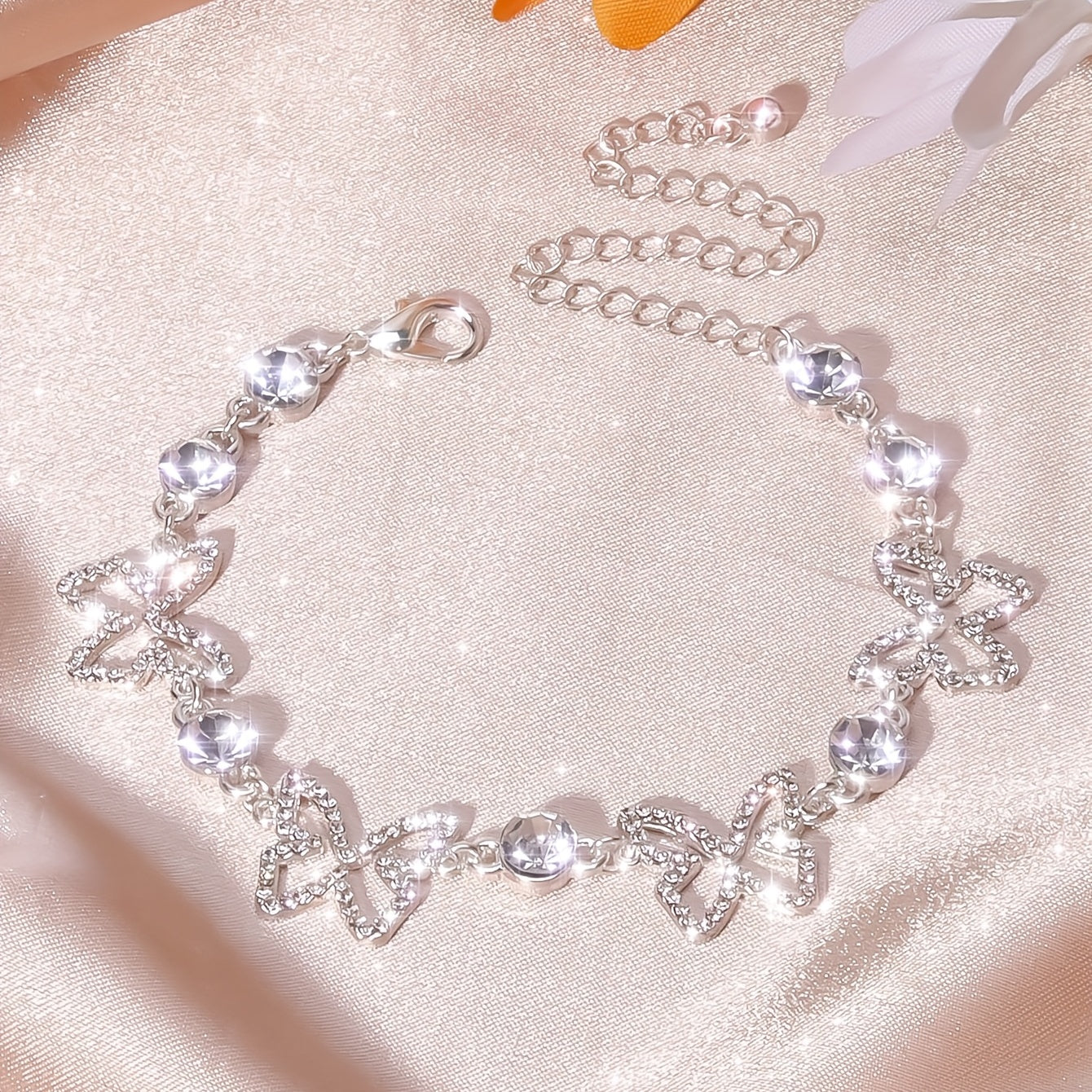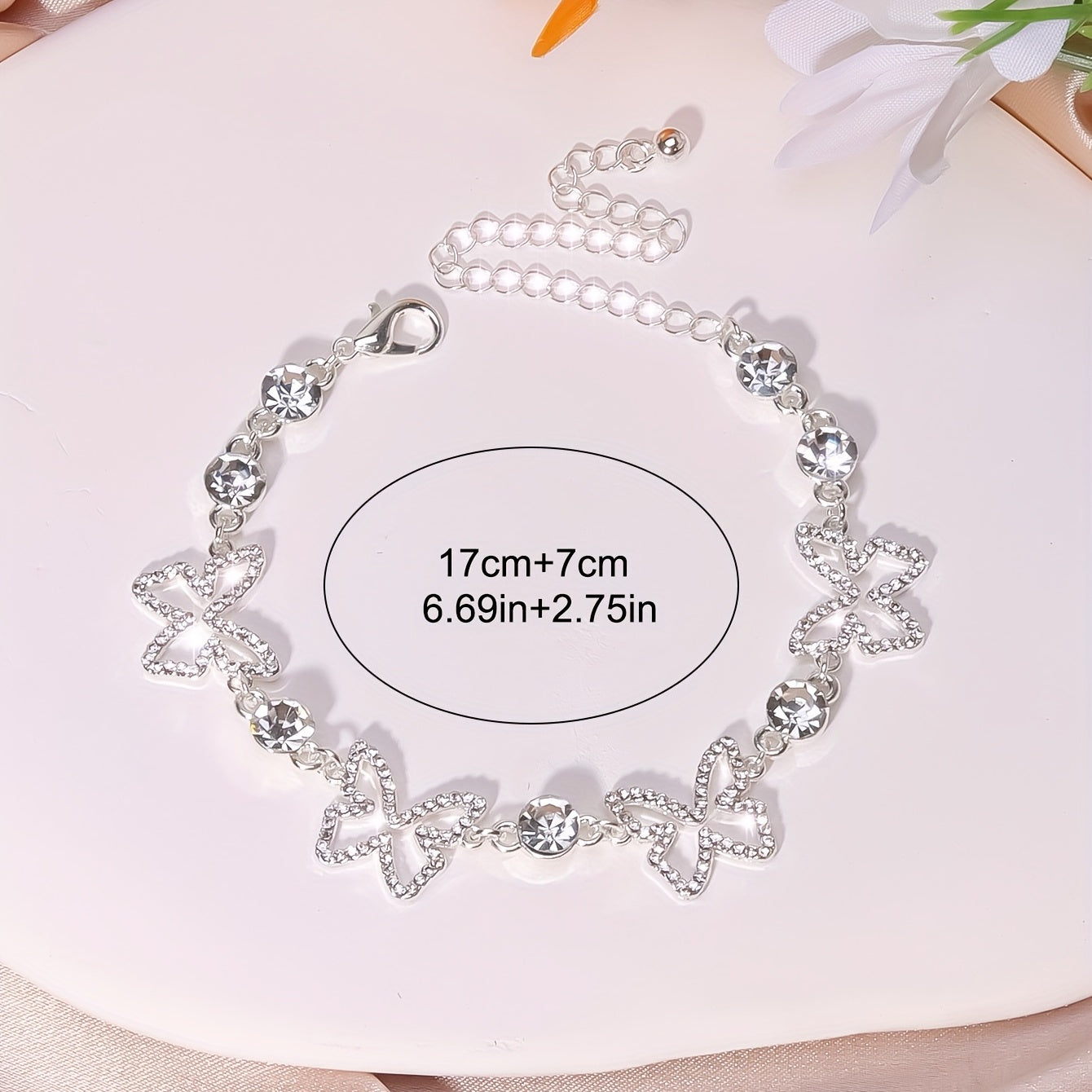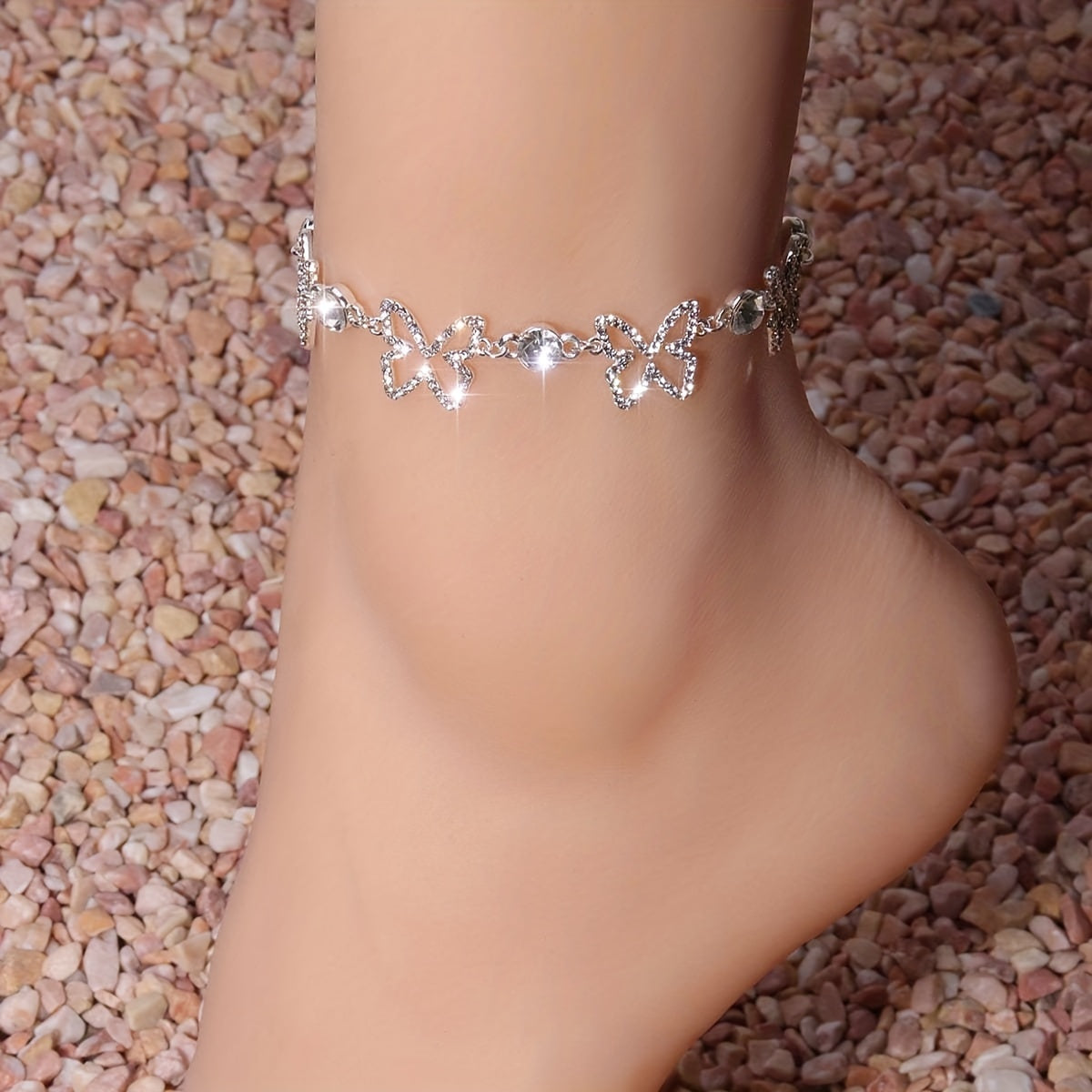 Add a touch of elegance with this silver anklet featuring a hollow butterfly design adorned with rhinestones.