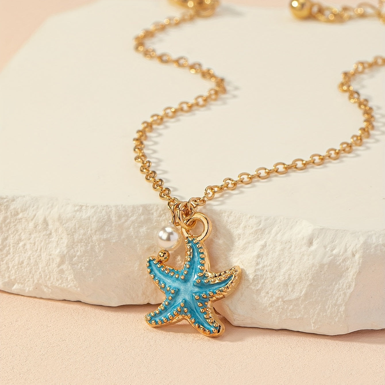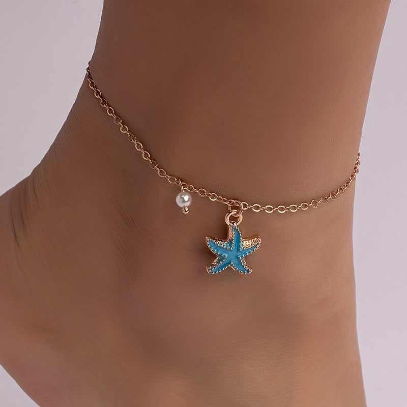 Add a touch of ocean-inspired style to your look with this versatile and stylish starfish pendant chain anklet. Perfect for beach days or everyday wear.