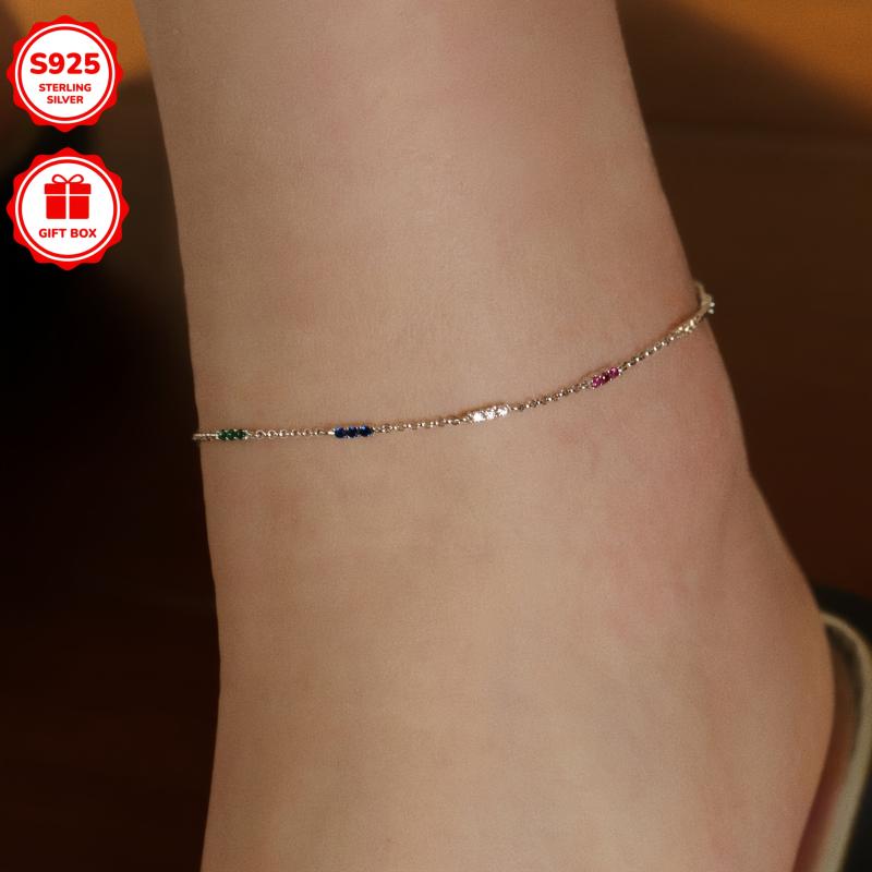 This anklet is perfect for women to wear during beach vacations. It is made of 925 sterling silver with colorful stones, making it a great gift for loved ones and friends.