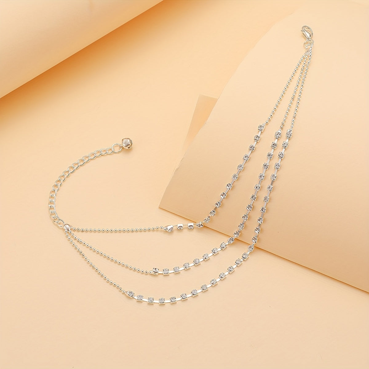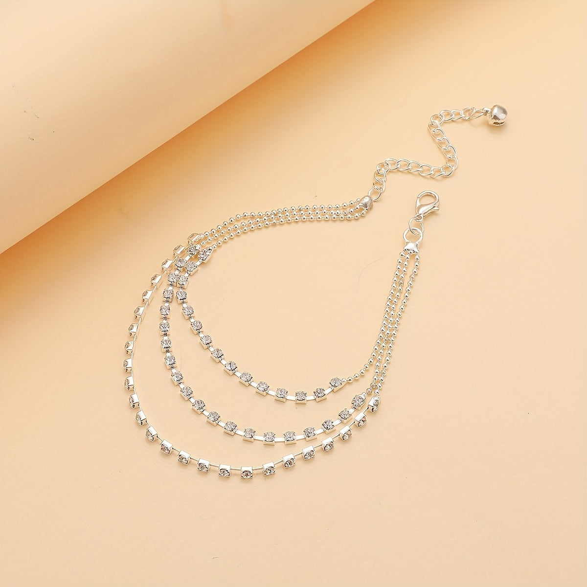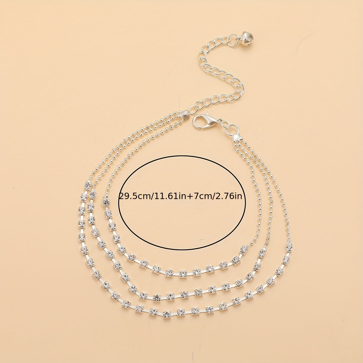 Complete your look with this stylish anklet set, perfect for parties, vacations, and beach outings. Eco-friendly copper jewelry in silver and golden colors with rhinestone accents.