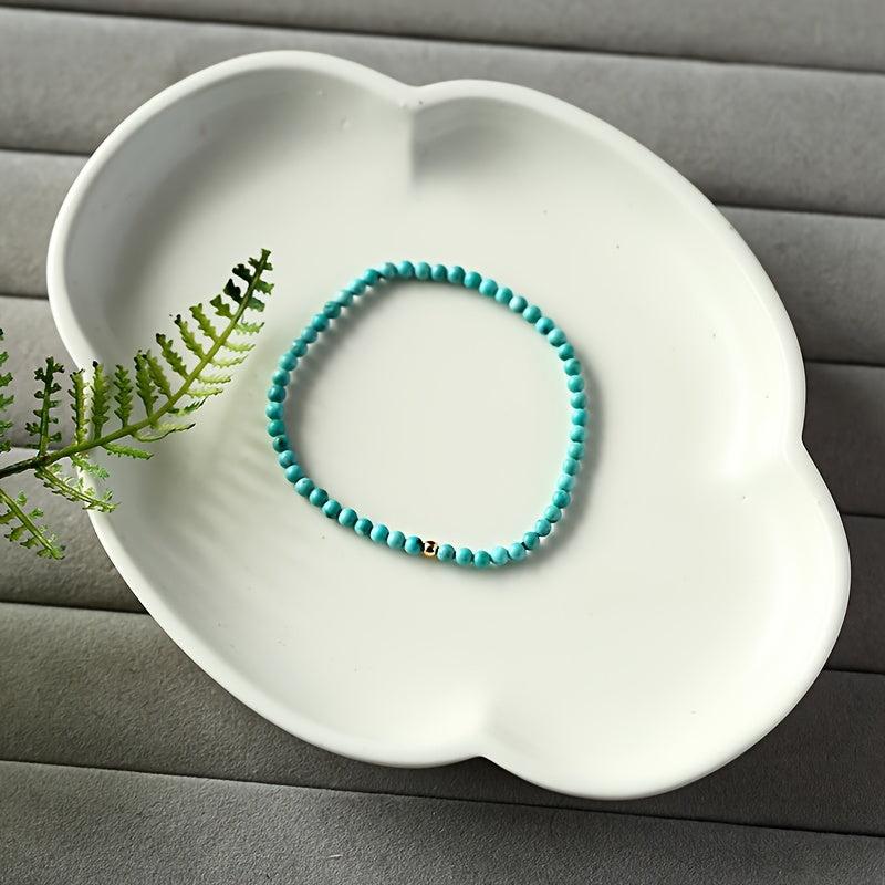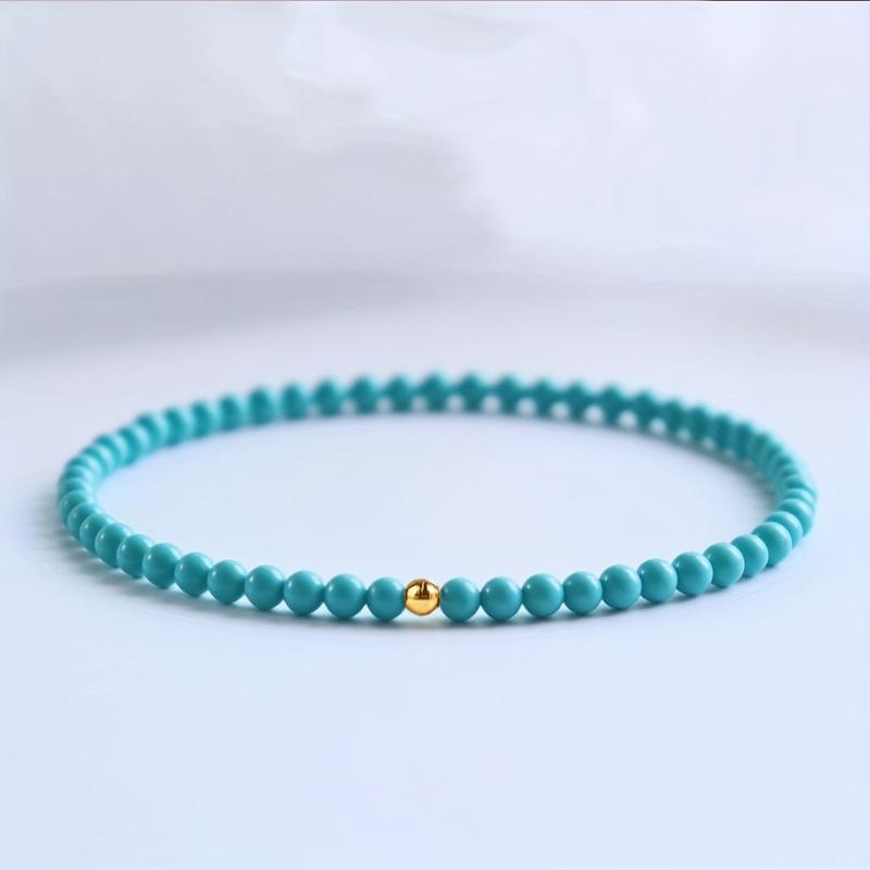 This 3mm natural stone turquoise bracelet and anklet is a perfect present for women born under the signs of Sagittarius and Capricorn. It is stretchable and stackable, making it a versatile accessory.