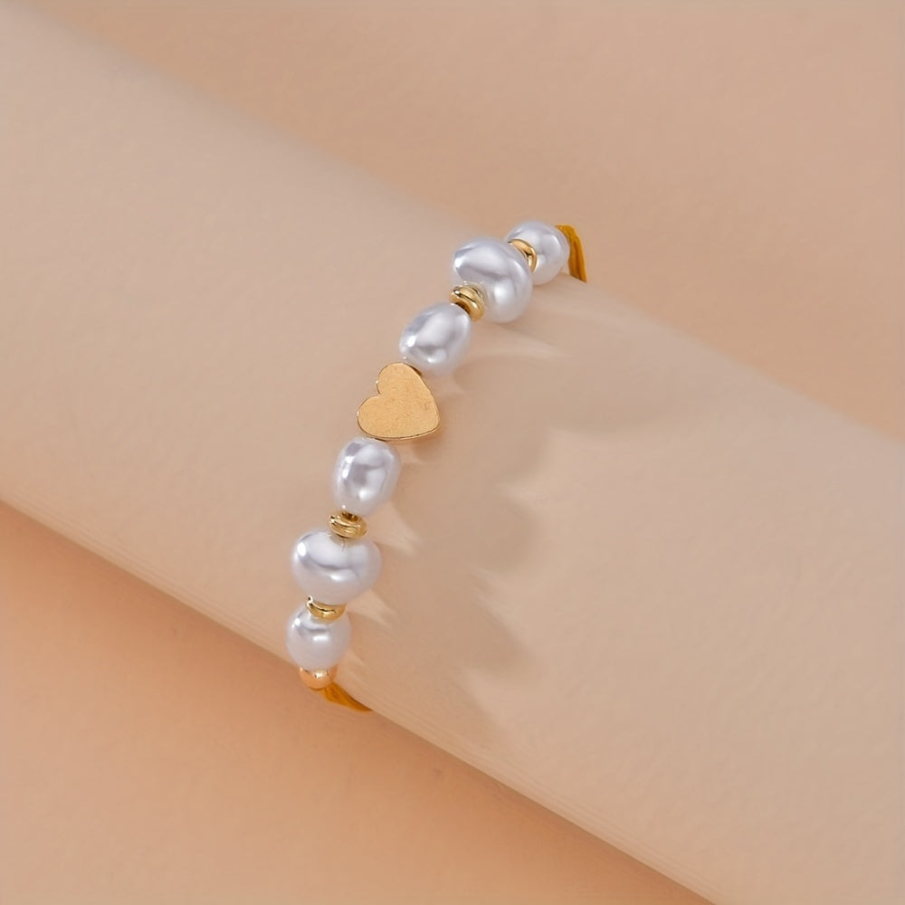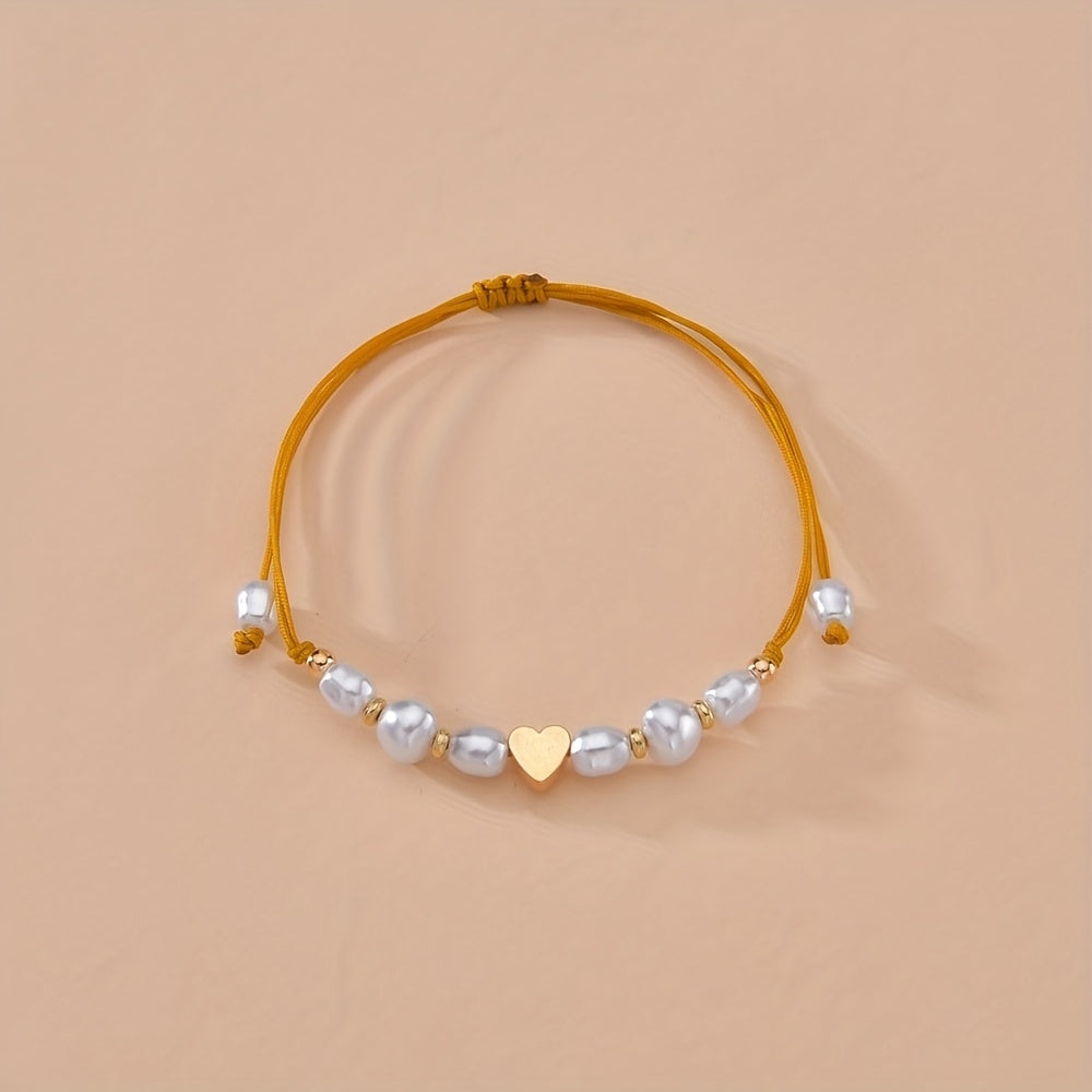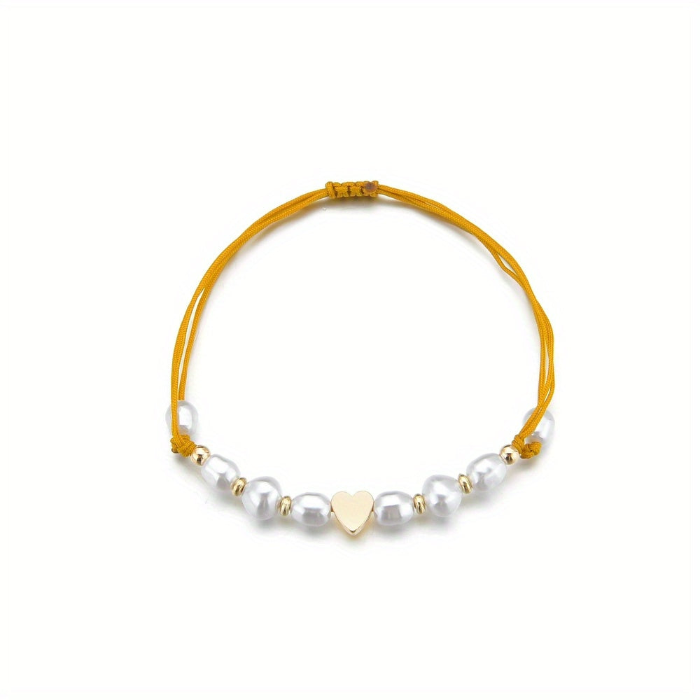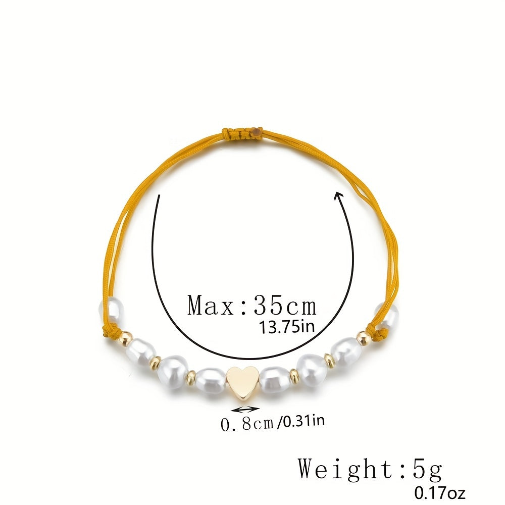 This waterproof anklet features a braided design with love heart shape faux pearls beads. It is a stylish accessory that adds a touch of elegance to any outfit.
