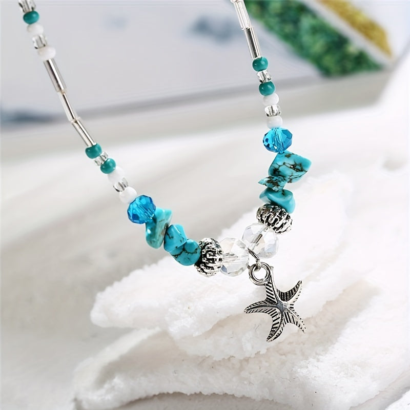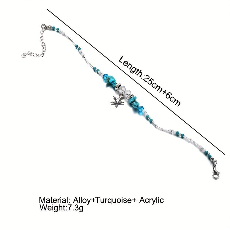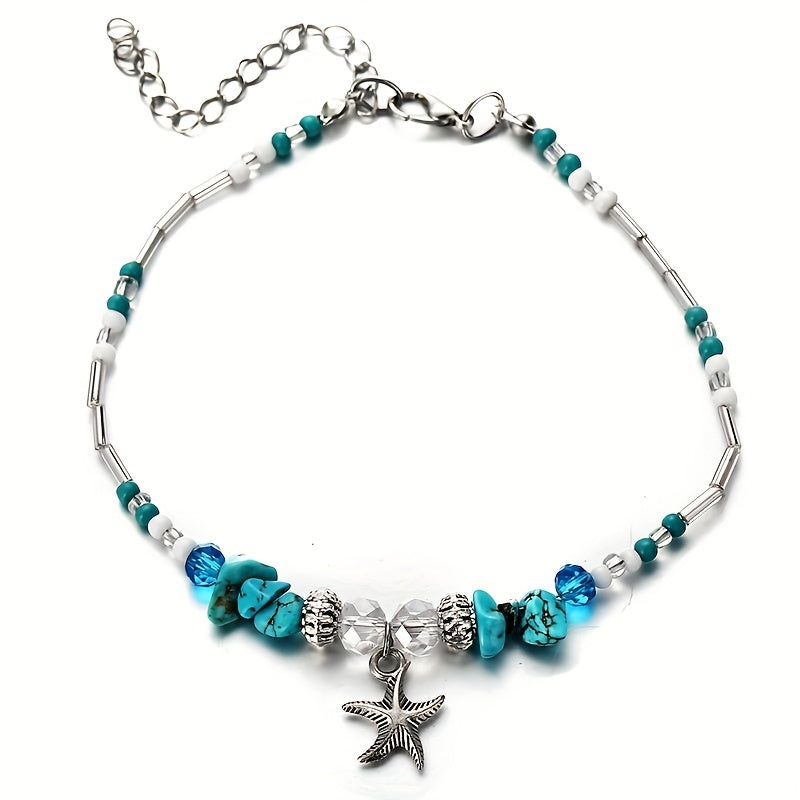 Add a touch of vintage charm to your beach look with this men's anklet featuring starfish and green stone beads.