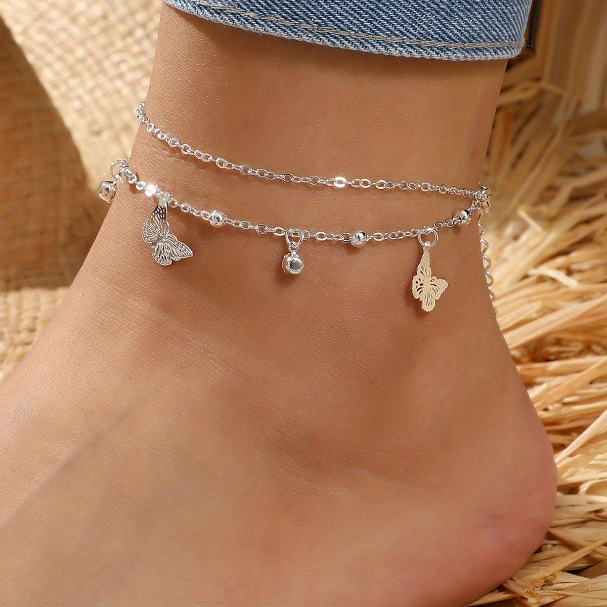 Add a touch of elegance and charm to your style with this versatile bell hollow butterfly pendant anklet. Made of high-quality silver-plated material, this foot decoration is perfect for everyday wear or special occasions.