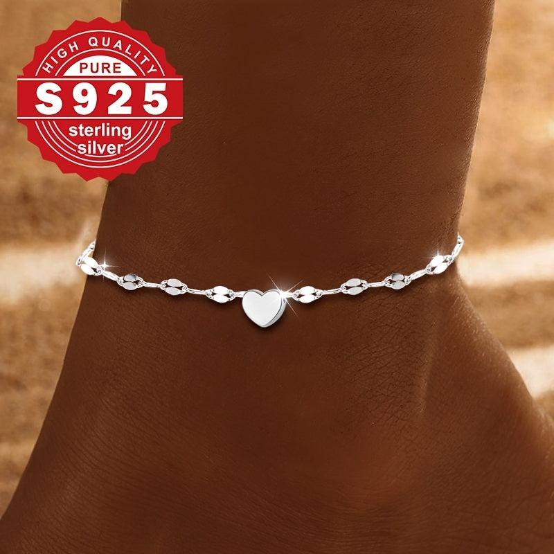 This ankle bracelet is crafted from S925 sterling silver and features a heart pendant. It is perfect for everyday wear, parties, and vacations due to its low allergy design.