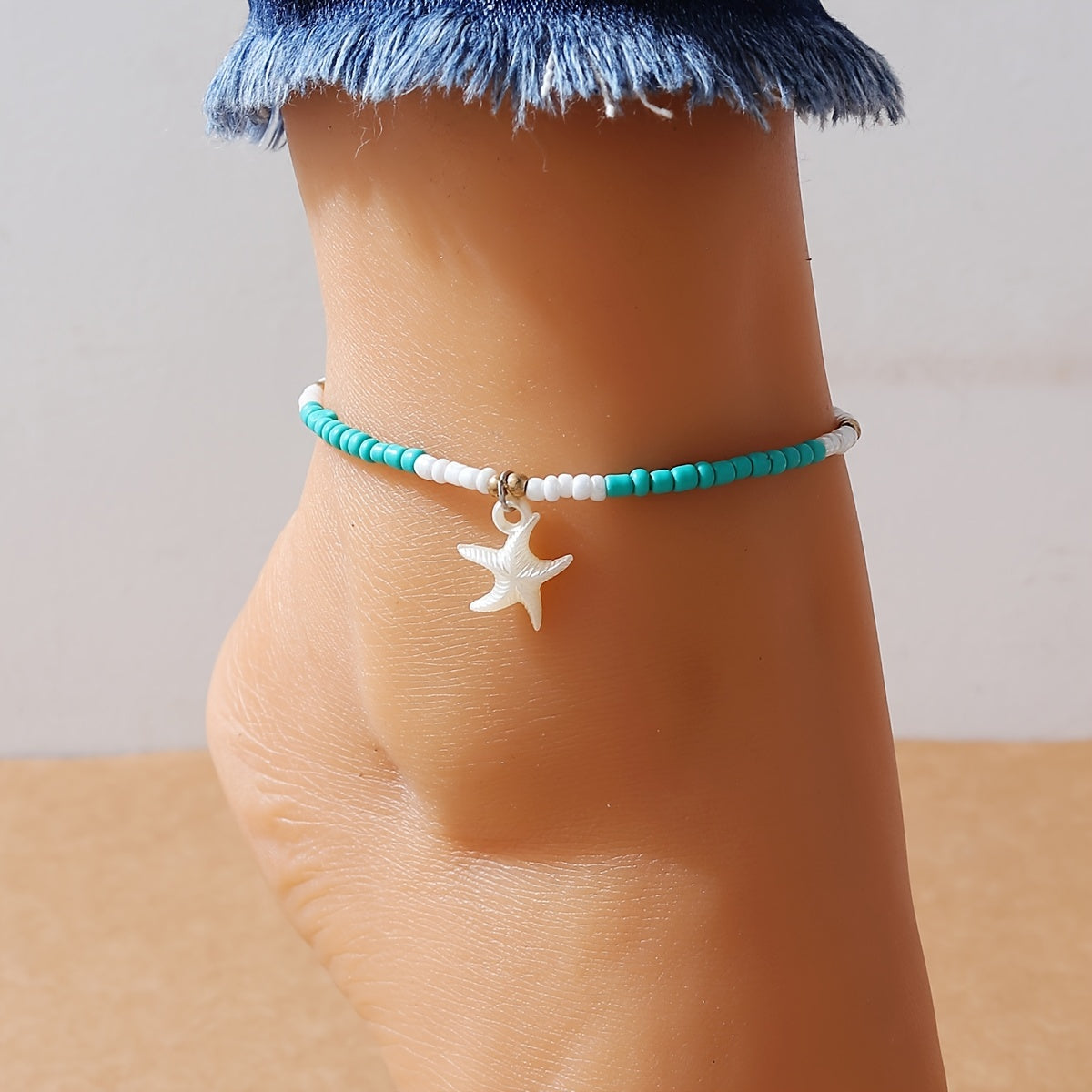 Embrace the Y2K trend with this vintage resin anklet featuring rice bead design and starfish charm.