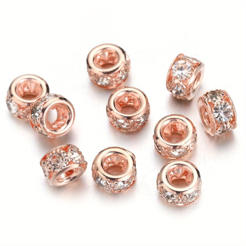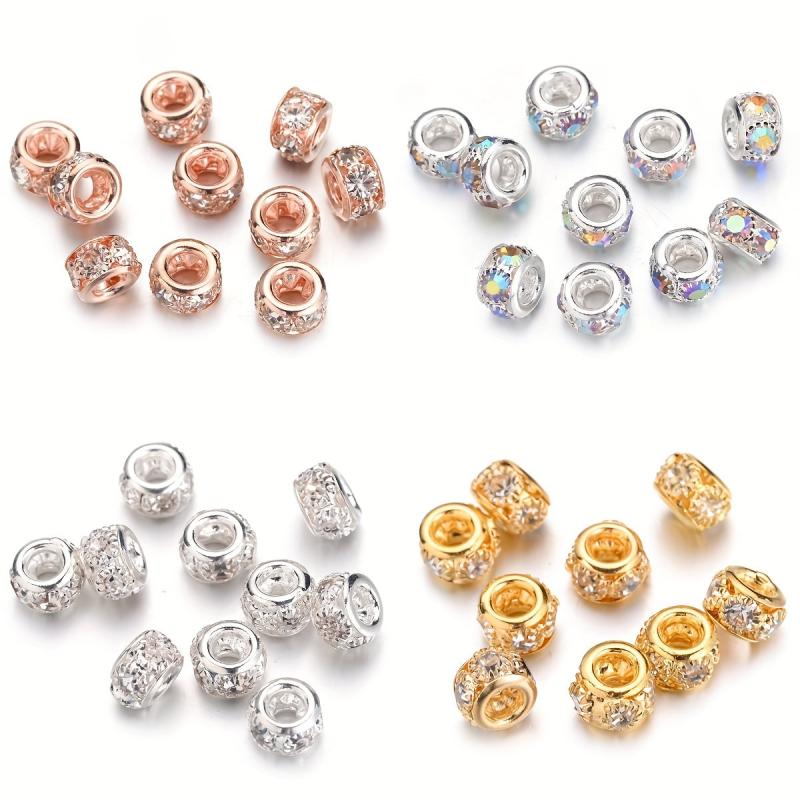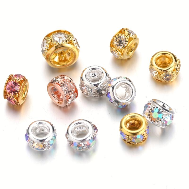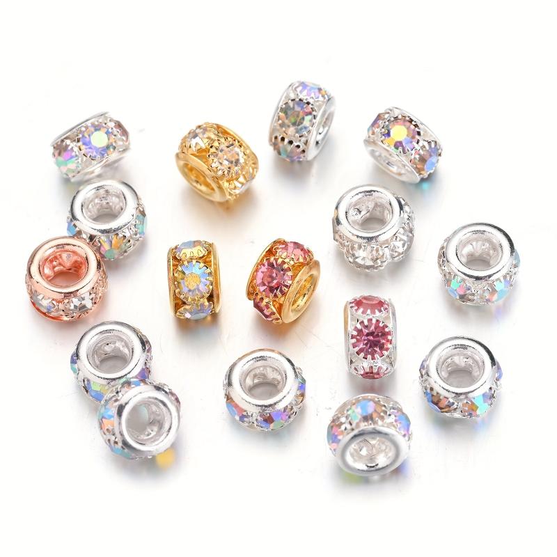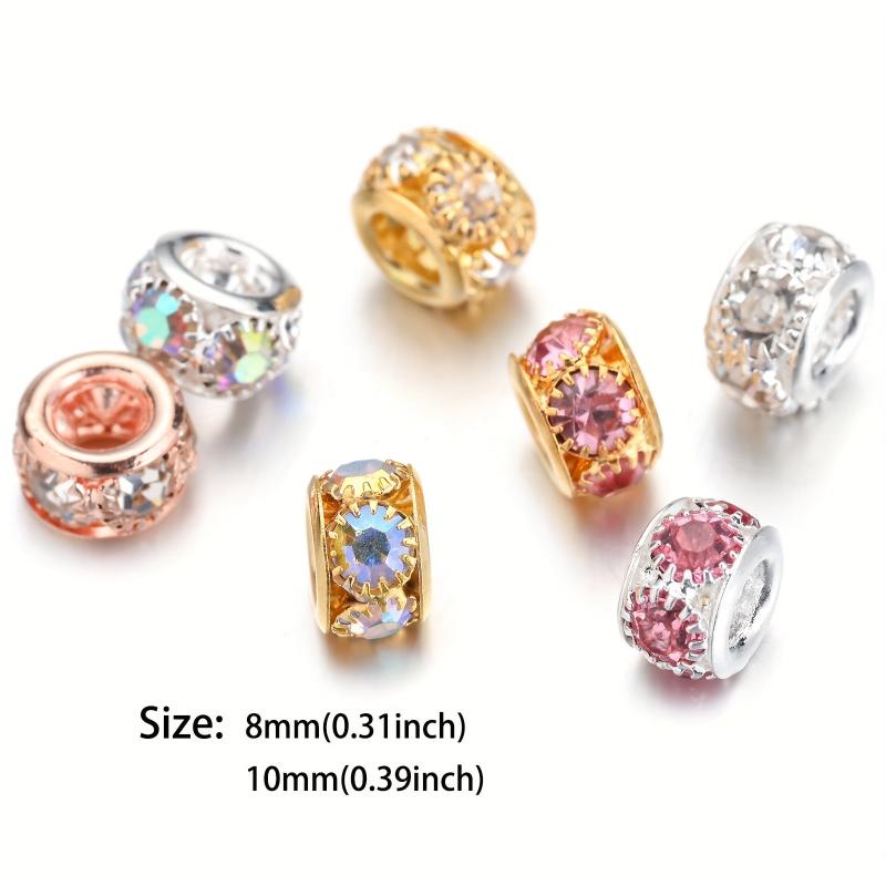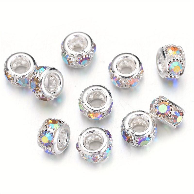 Add some sparkle to your jewelry making projects with these 10 large hole rhinestone spacer beads. Perfect for bracelets, necklaces, and DIY crafts.