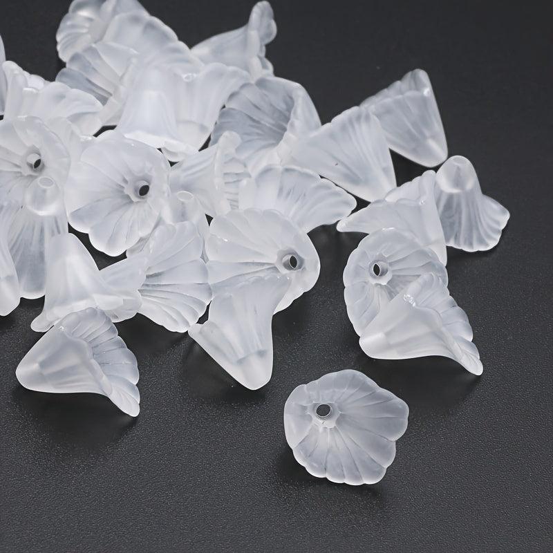 These frosted acrylic bell flower beads are perfect for creating unique jewelry pieces like bracelets, necklaces, and earrings. They can also be used for various DIY craft projects or as decorative beads.