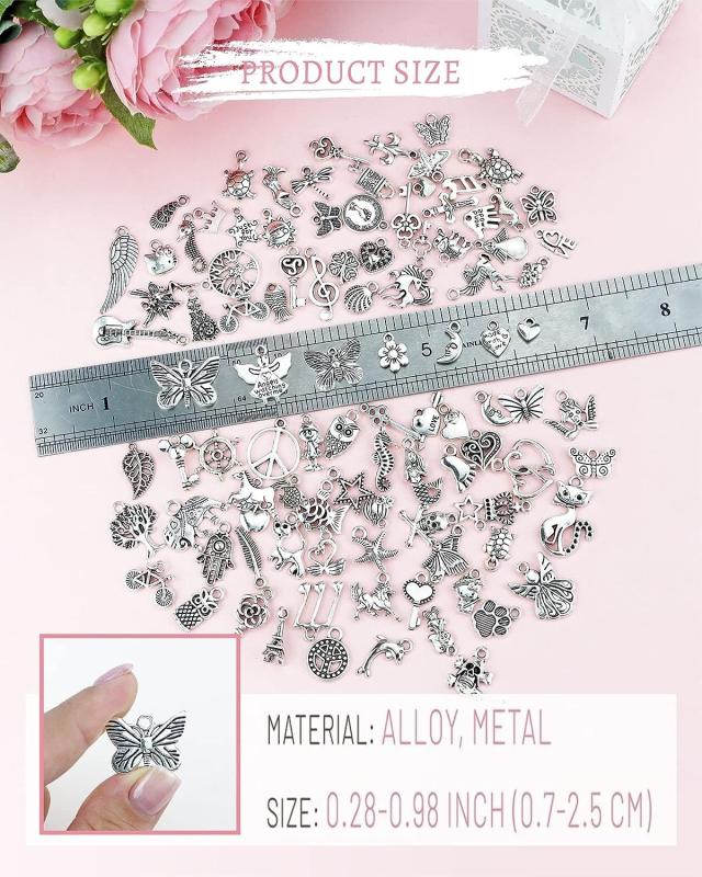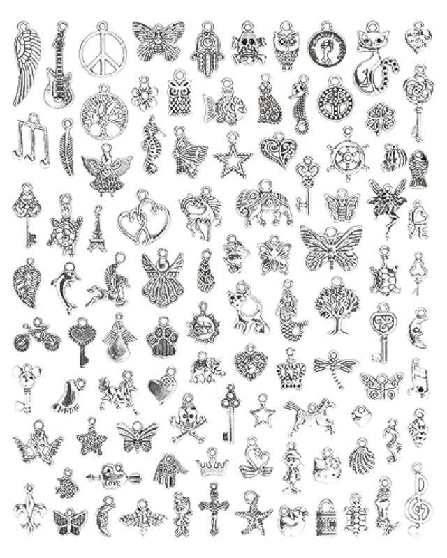 This 100-piece beads charms set is perfect for creating beautiful jewelry, including bracelets, necklaces, and earrings.