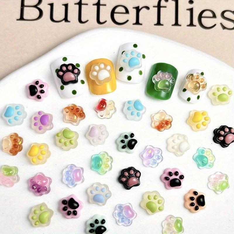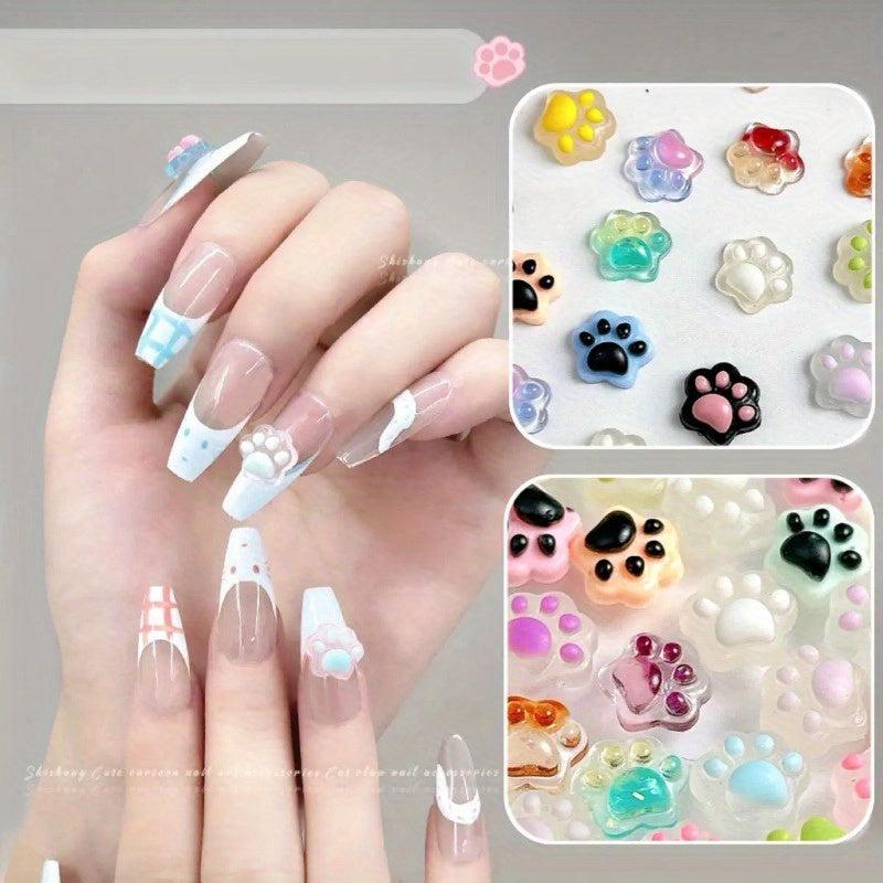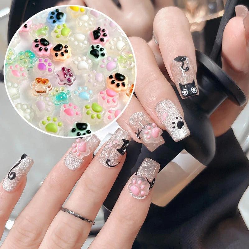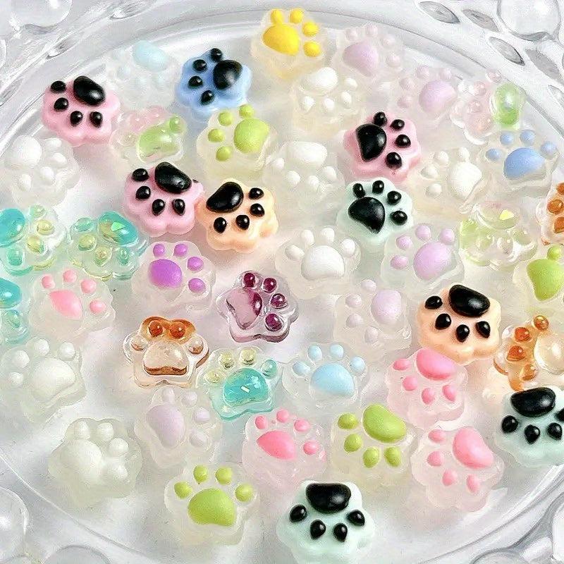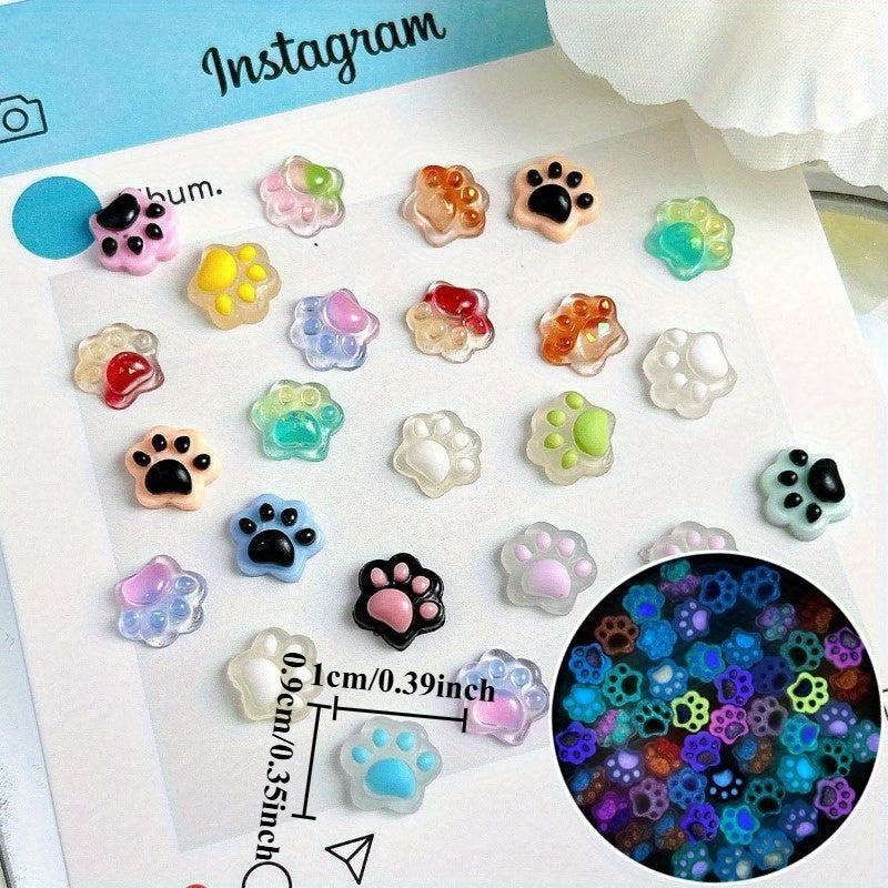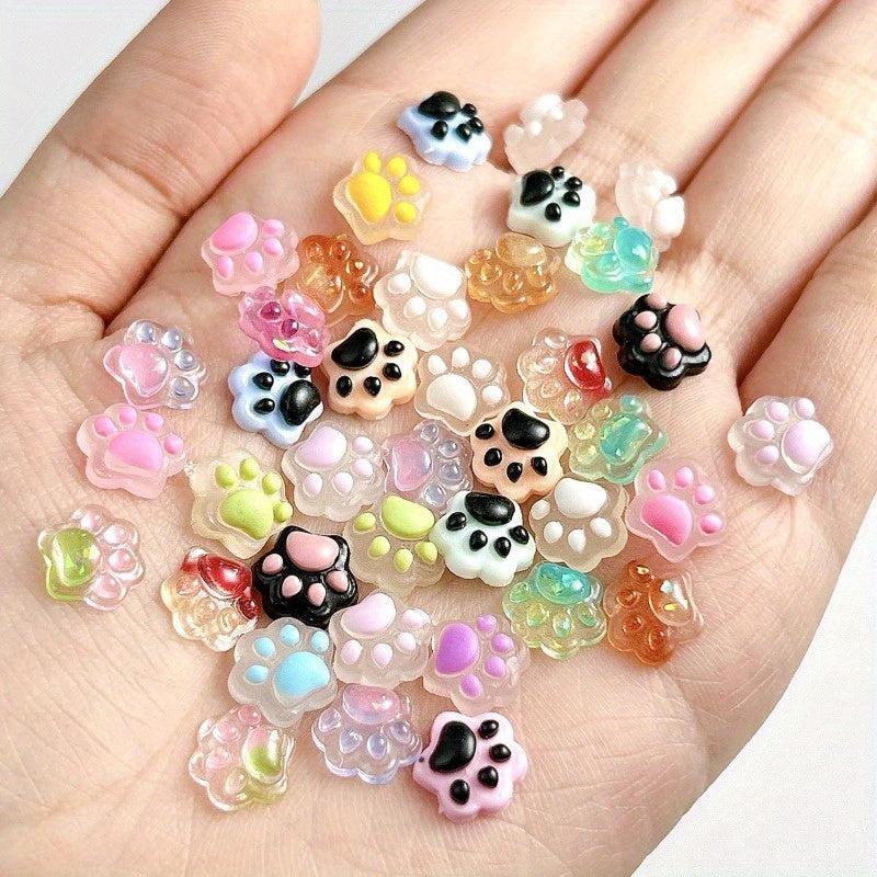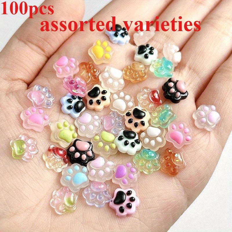 Enhance your nail art with these 100 mixed luminous resin cat paw nail accessories. Suitable for creative crafts and DIY nail decoration.