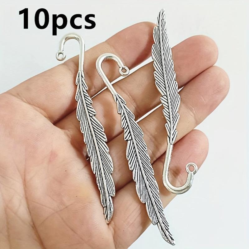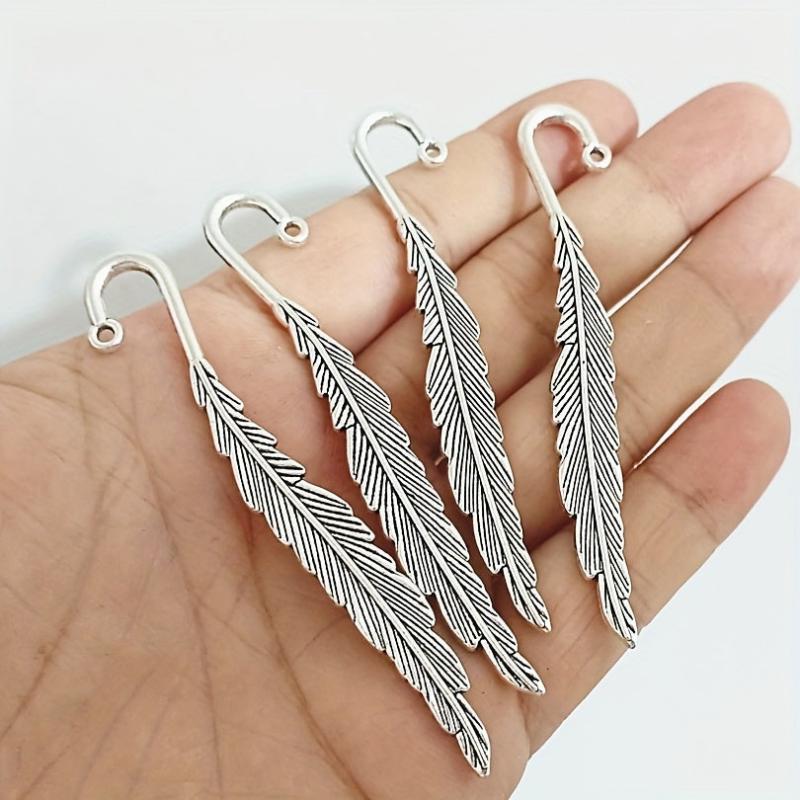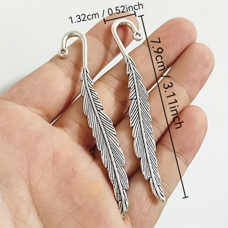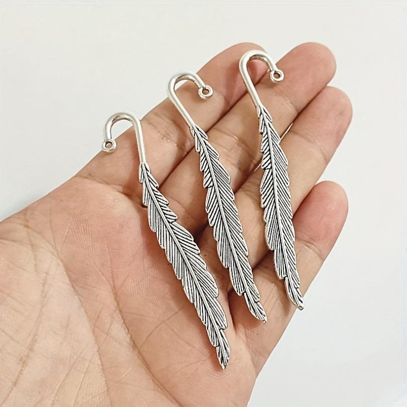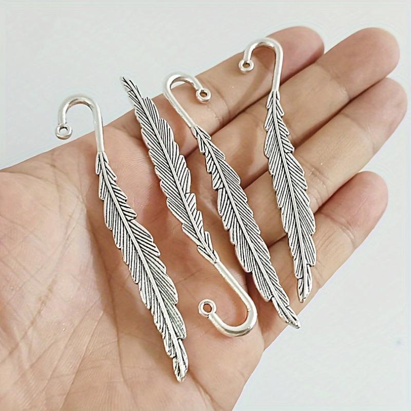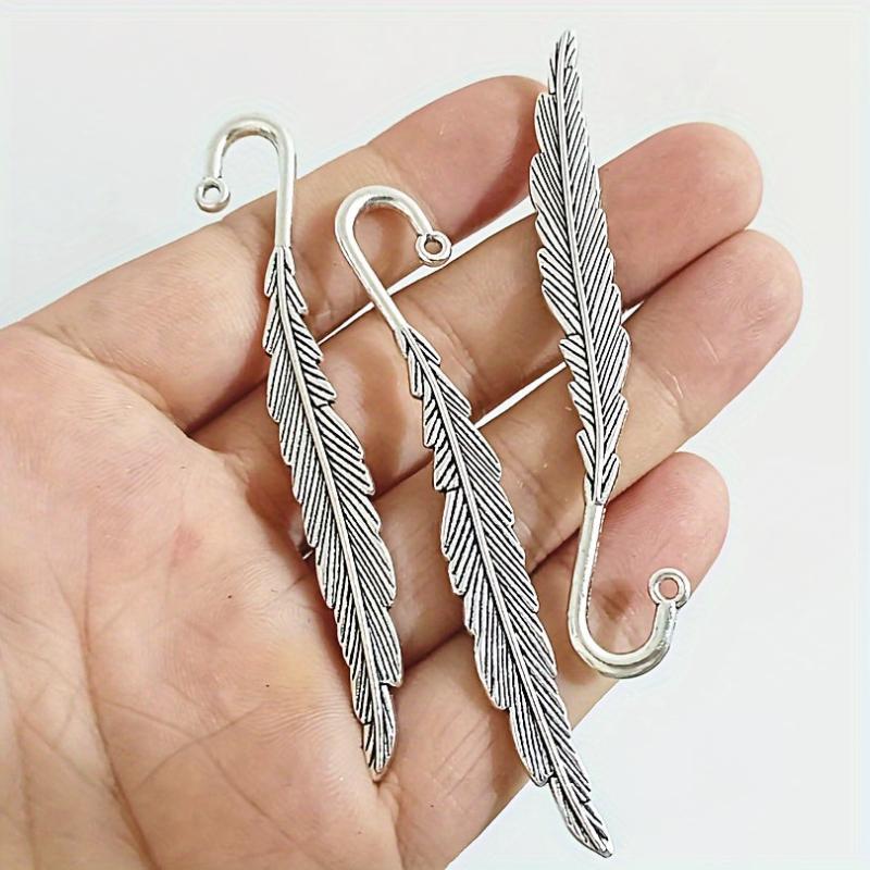 Enhance your reading experience with these silvery antique alloy feather bookmarks featuring delicate details. Perfect for DIY projects.