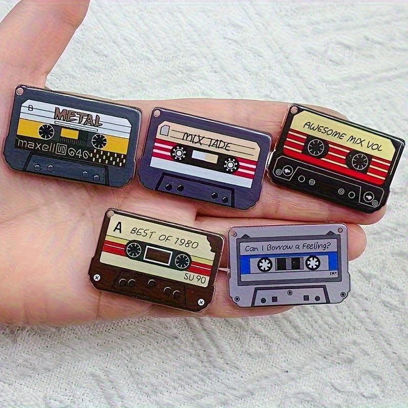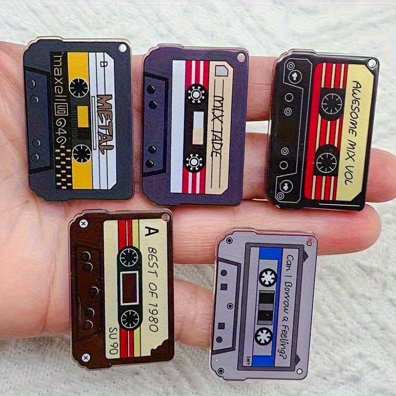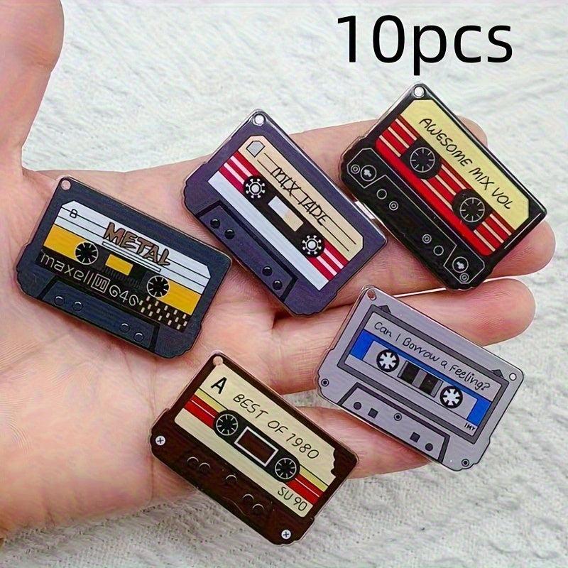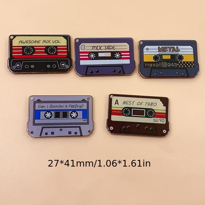 Vintage cassette tape pendants in assorted colors & texts for DIY earrings, necklaces, and jewelry accessories. Ideal for crafting unique pieces.