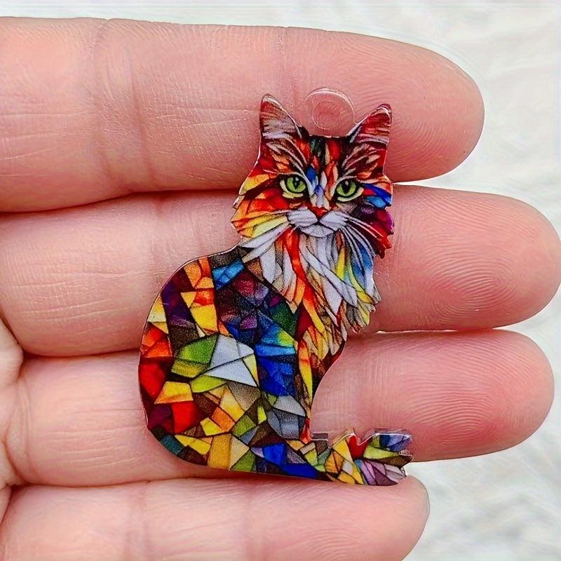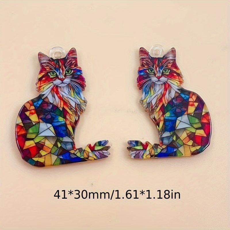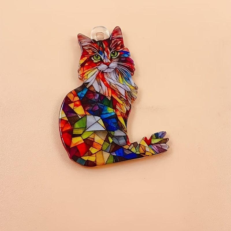 Enhance your jewelry with this set of 10 vibrant acrylic cat charms. Perfect for necklaces, earrings, keychains, and more. No inlay required.