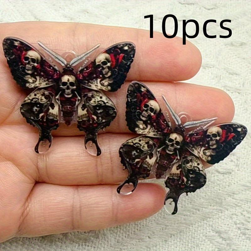 Get creative with this set of 10 Halloween charm accessories featuring acrylic skull and butterfly pendants. Perfect for DIY necklace making projects.