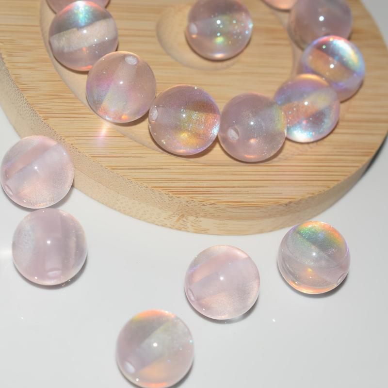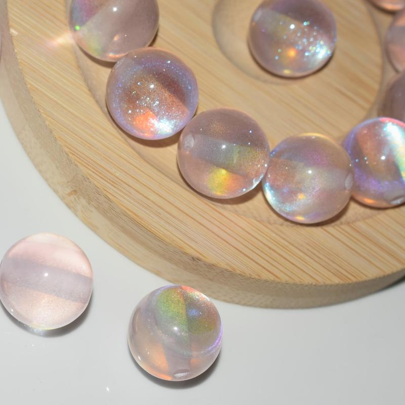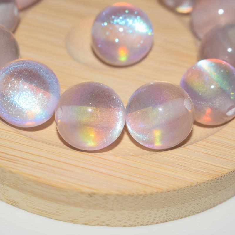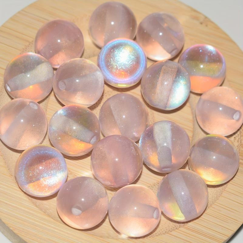 These light pink sparkle glitter loose beads are perfect for adding a touch of bohemian style to your jewelry making projects. Each bead measures 16mm and is made of high-quality resin. Great for DIY bracelets and other handmade accessories.