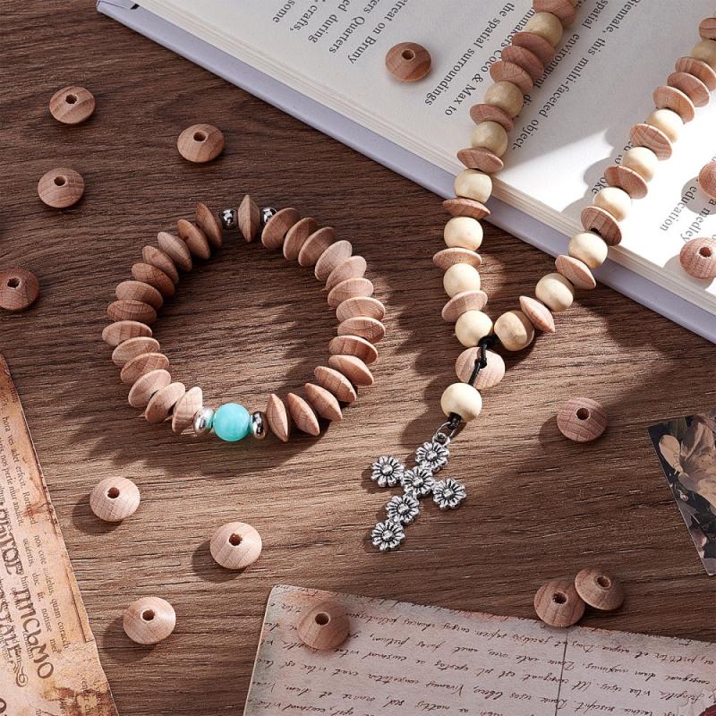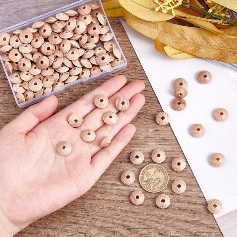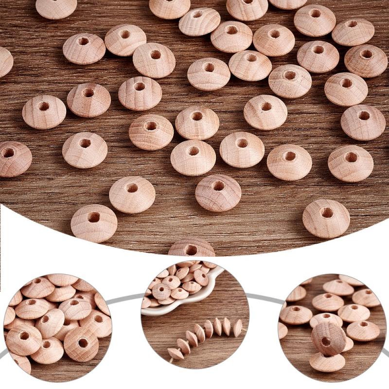 Create beautiful jewelry with these wooden rondelle beads. Made from beech wood, each bead has a hole size of 3.5mm. Perfect for various crafting projects.
