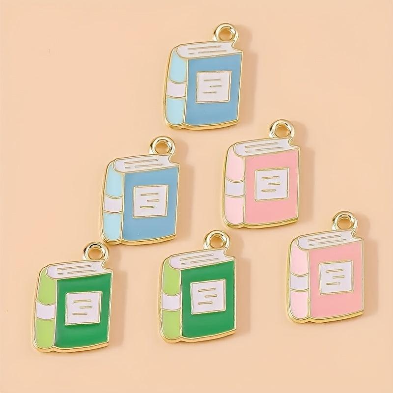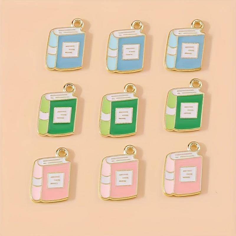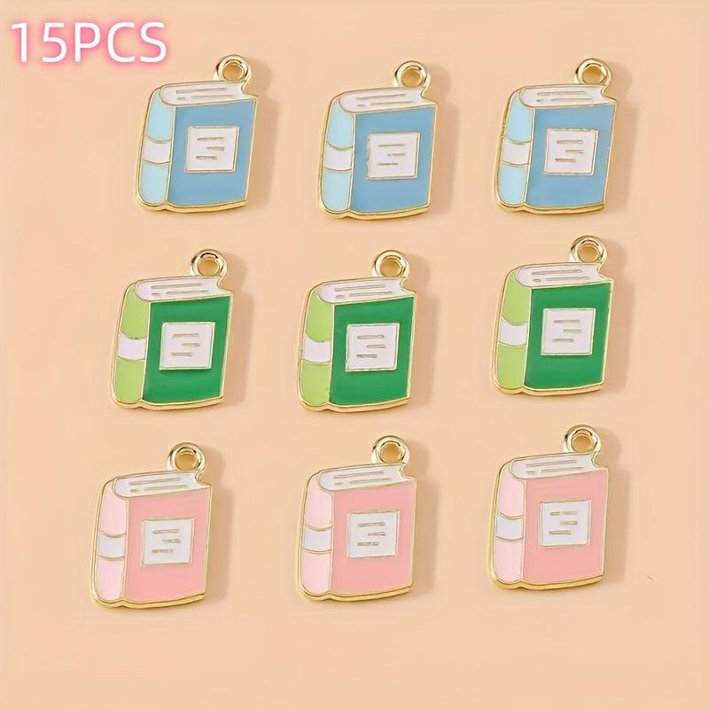 15pcs Cartoon Book Charm Set for DIY Jewelry Making