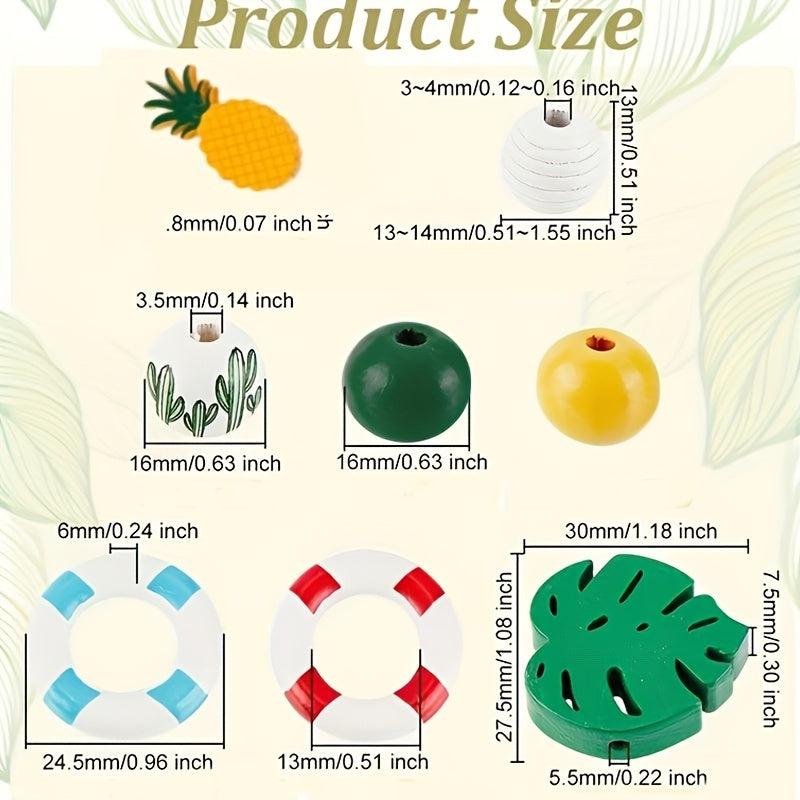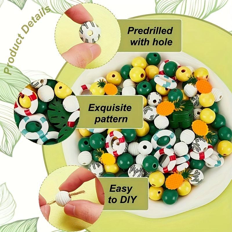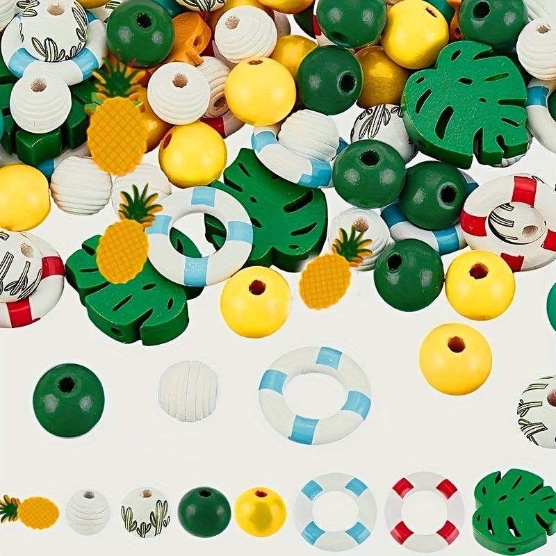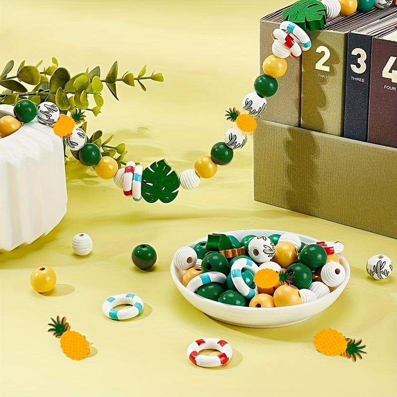 Get creative with these colorful wooden beads featuring pineapple, monster, leaf, and cactus patterns. Ideal for bracelets, necklaces, garlands, and more.