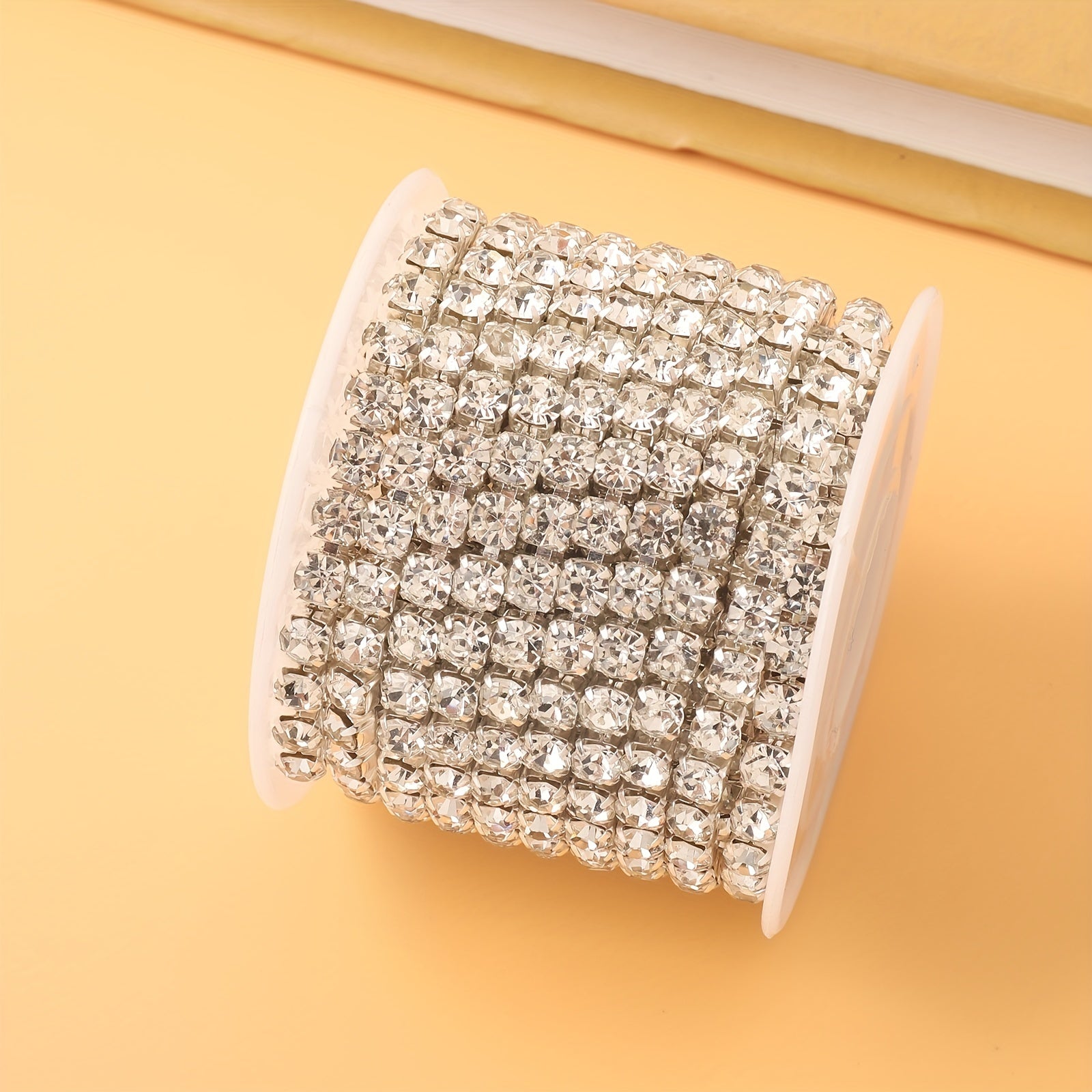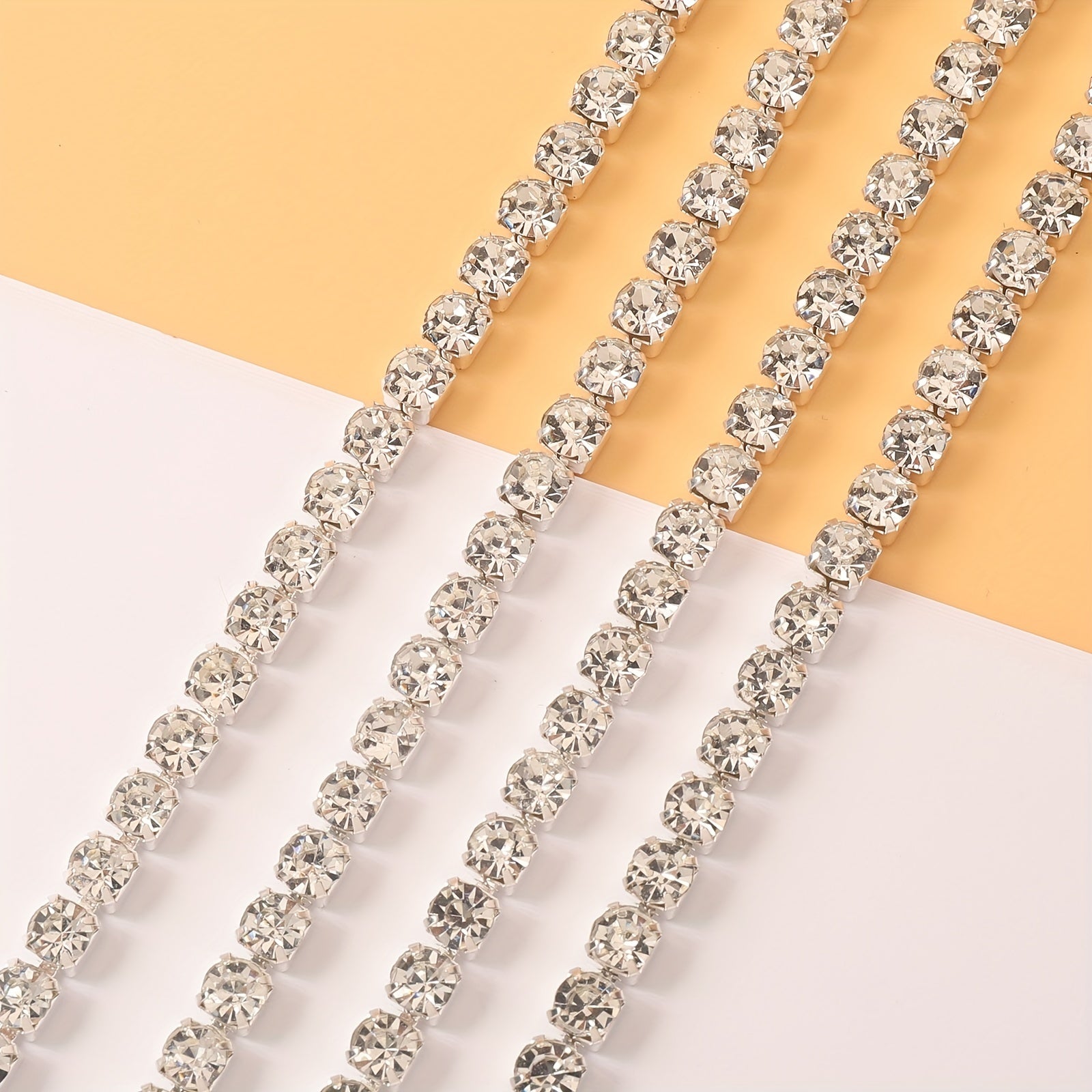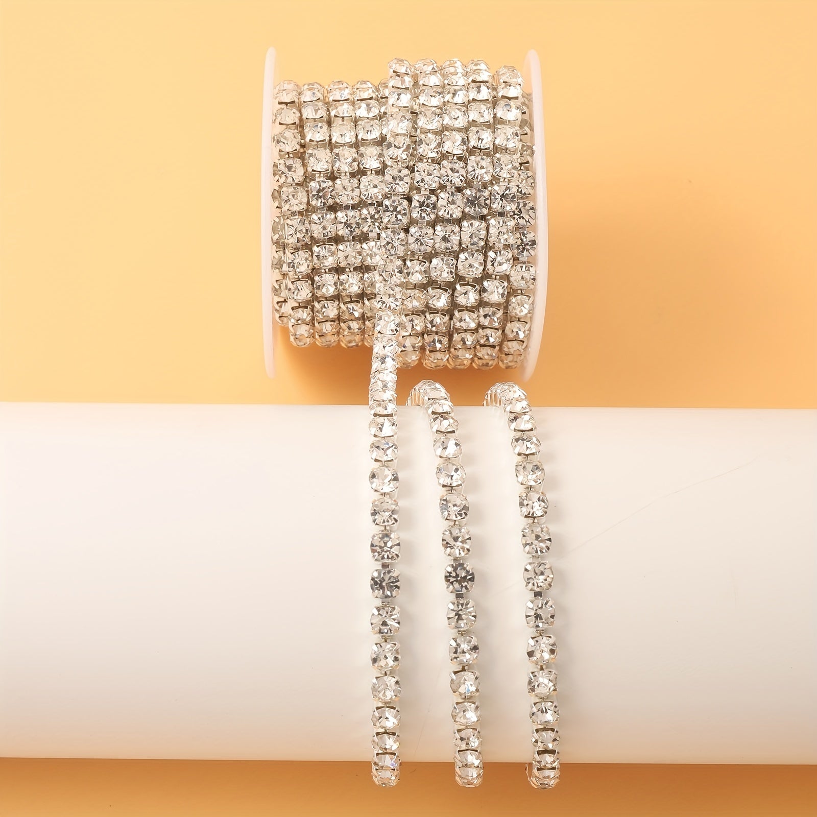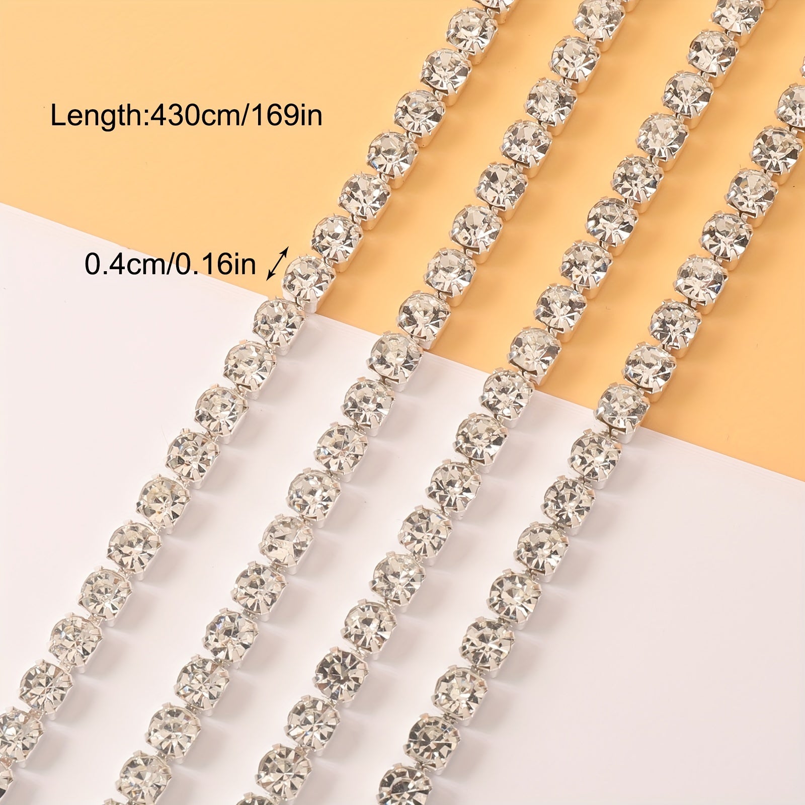 Add a touch of glamour with this 177 17inch (4m) flash silver rhinestone chain. Perfect for decorating shoes, clothing, making bracelets, necklaces, and more.