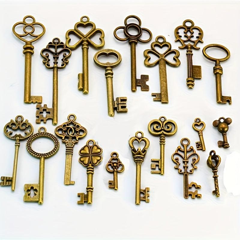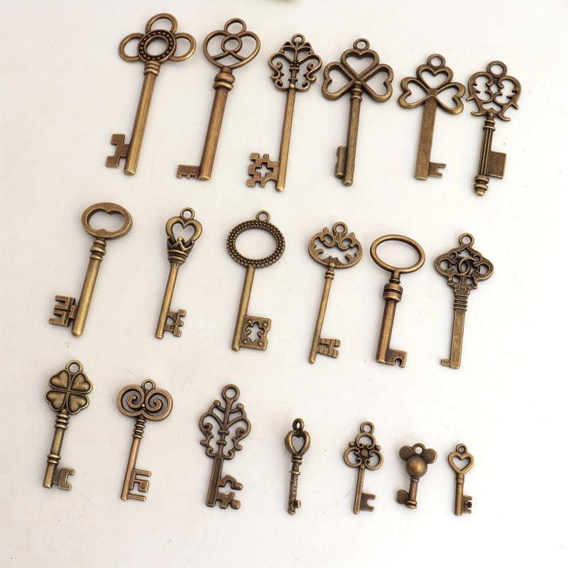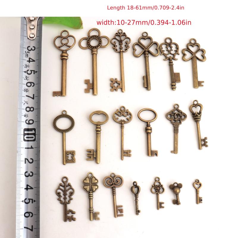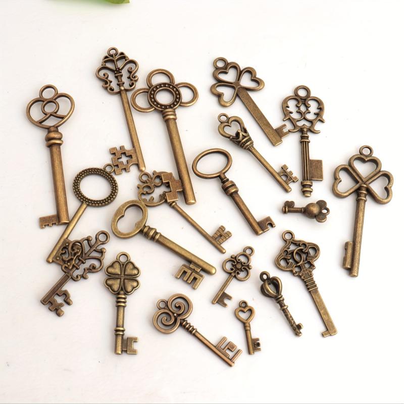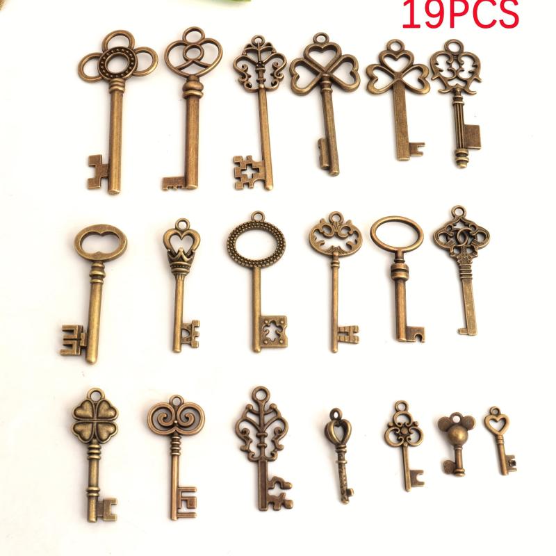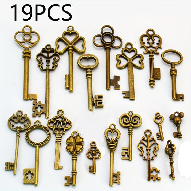 Create unique bracelets, necklaces, earrings and more with this set of 19 vintage skull keychain pendants in antique bronze. Perfect for jewelry making and crafting projects.