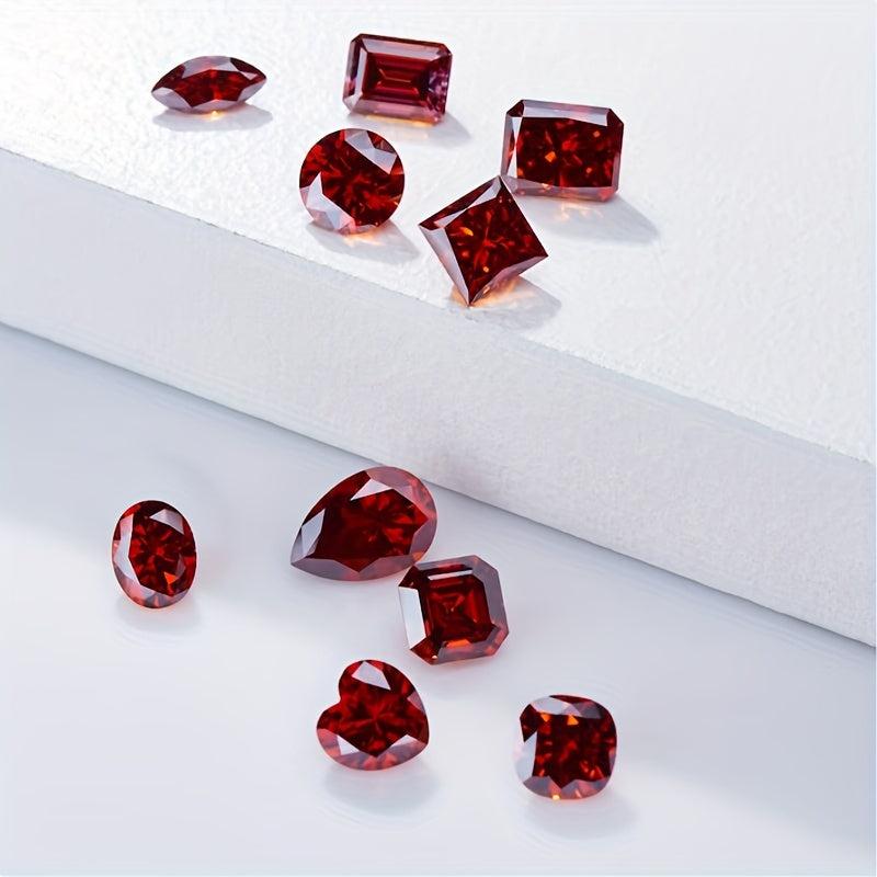 Enhance your jewelry collection with this vibrant 1ct red cut loose moissanite, perfect for creating stunning pieces like engagement rings, wedding bands, earrings, bracelets, pendants, and necklaces.