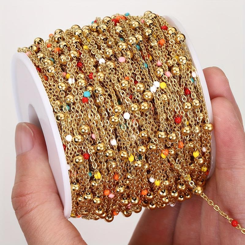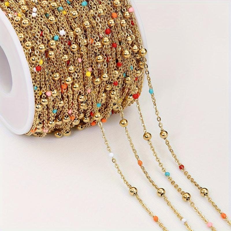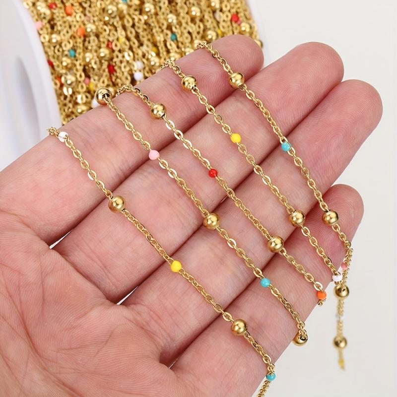 Create unique bracelets and necklaces with this stainless steel chain featuring multicolor enamel rice beads. Perfect for DIY jewelry crafting projects.