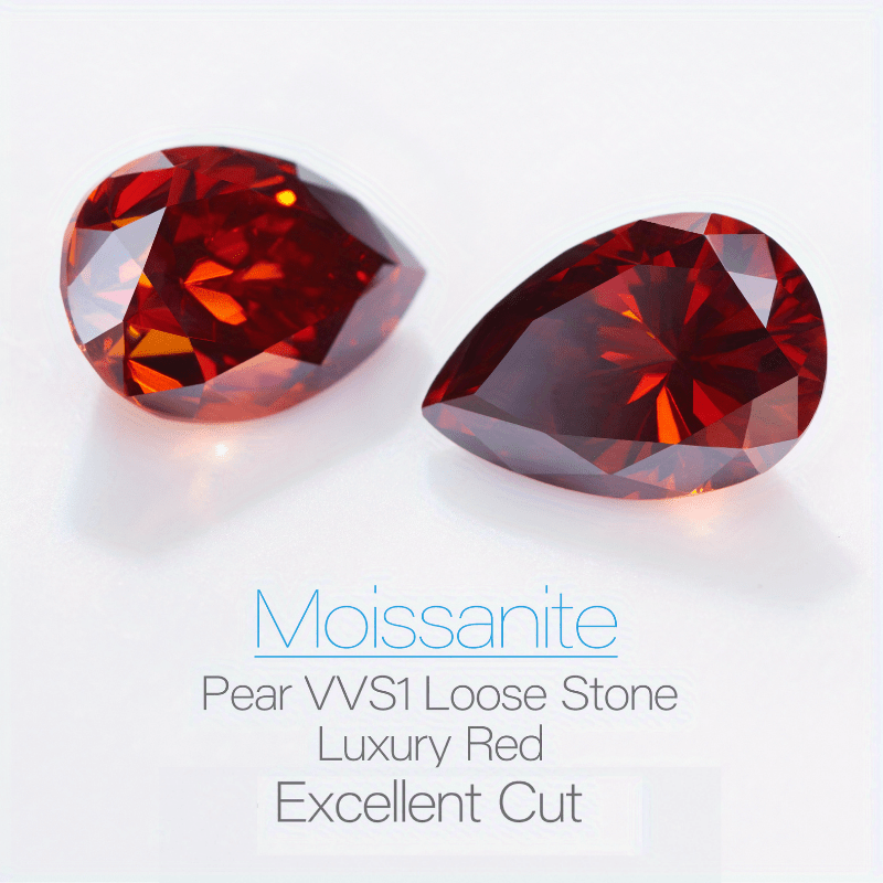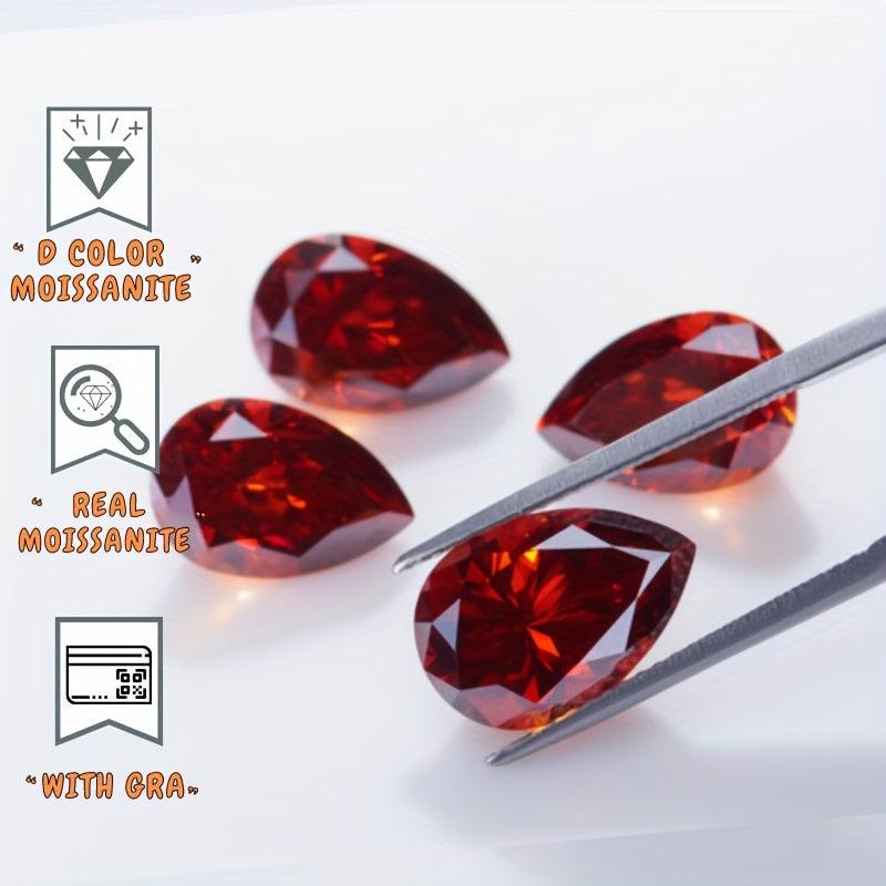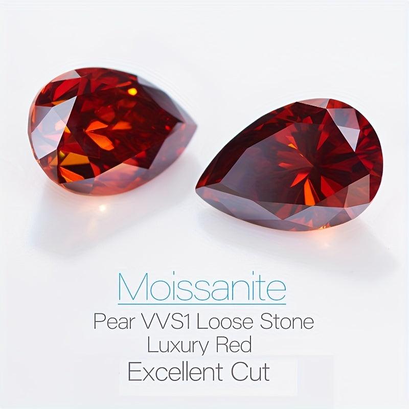 Enhance your jewelry creations with this pear-shaped red cut loose moissanite. Ideal for engagement rings, wedding bands, earrings, bracelets, pendants, and necklaces.