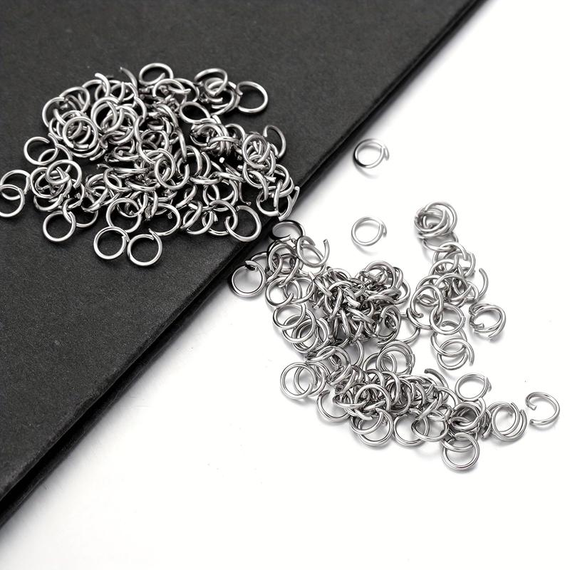 This pack contains 200 stainless steel open jump rings that can be used for making bracelets, necklaces, and other jewelry accessories.