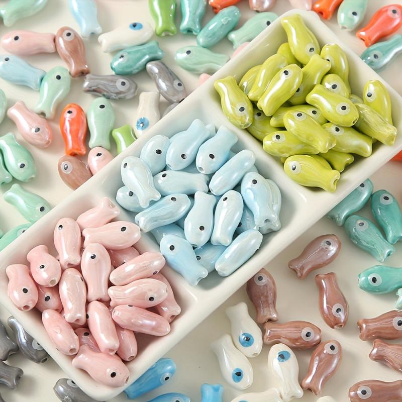 Create unique bracelets and necklaces with this set of 20 fresh and hand painted ceramic fish beads. Perfect for crafting and accessorizing your favorite pieces.