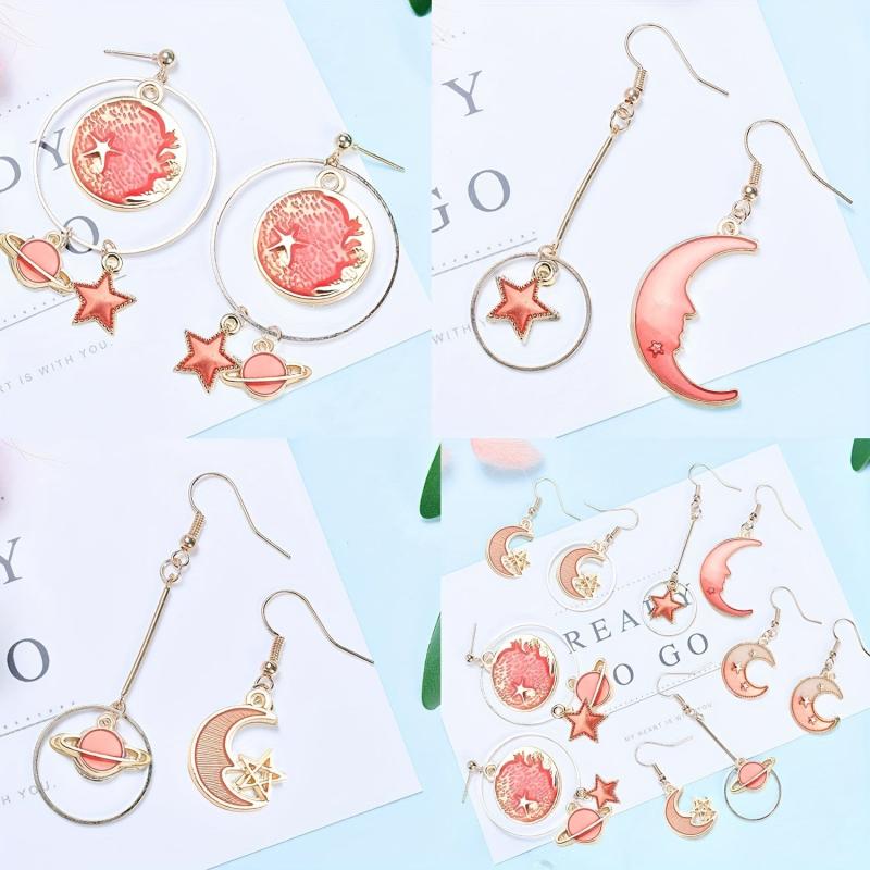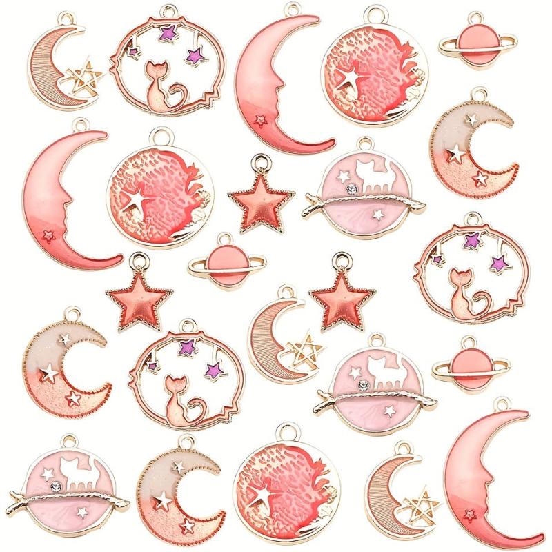 Create stunning earrings, necklaces, and bracelets with this set of 24 pink assorted plated enamel celestial pendants. Perfect for cat and moon lovers.