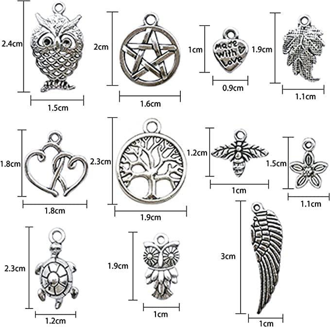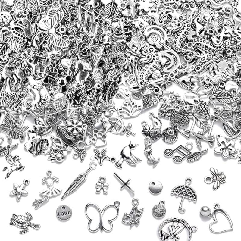 This bulk lot includes random assorted smooth Tibetan alloy charms for creating unique bracelets and necklaces. Perfect for crafters and jewelry makers.