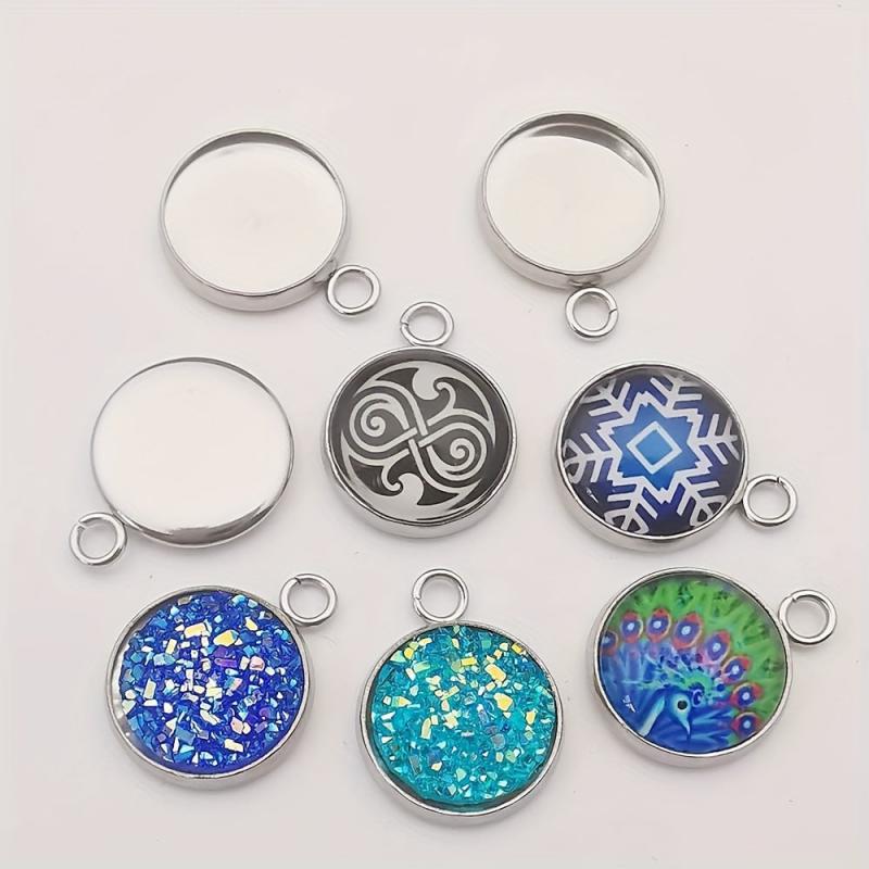 Create beautiful jewelry pieces with these 25 stainless steel round blank frame pendant trays. Each tray has a convex setting for easy customization.