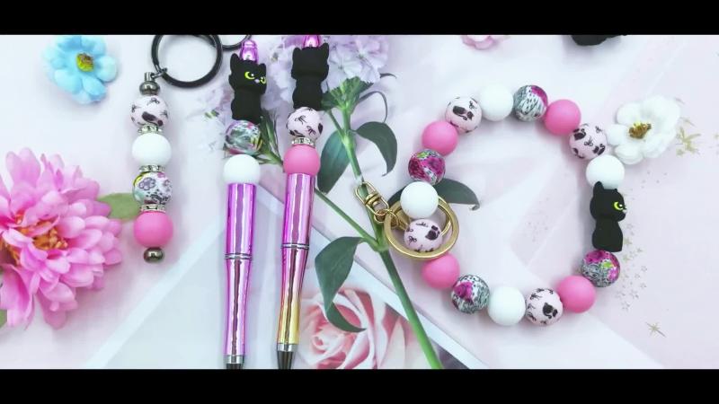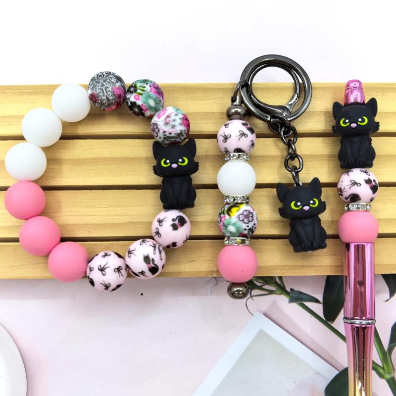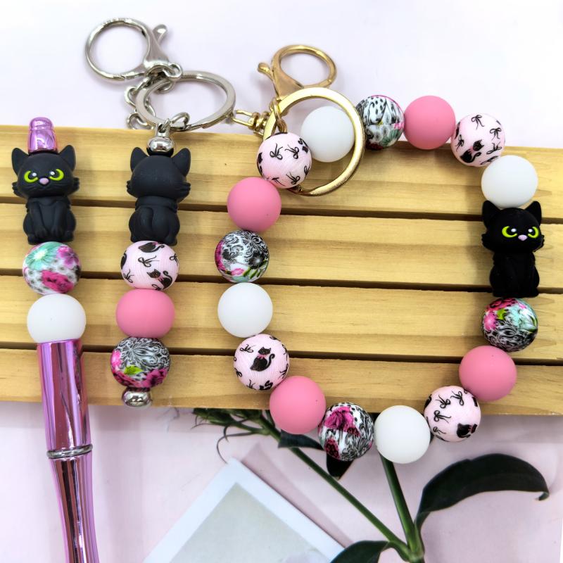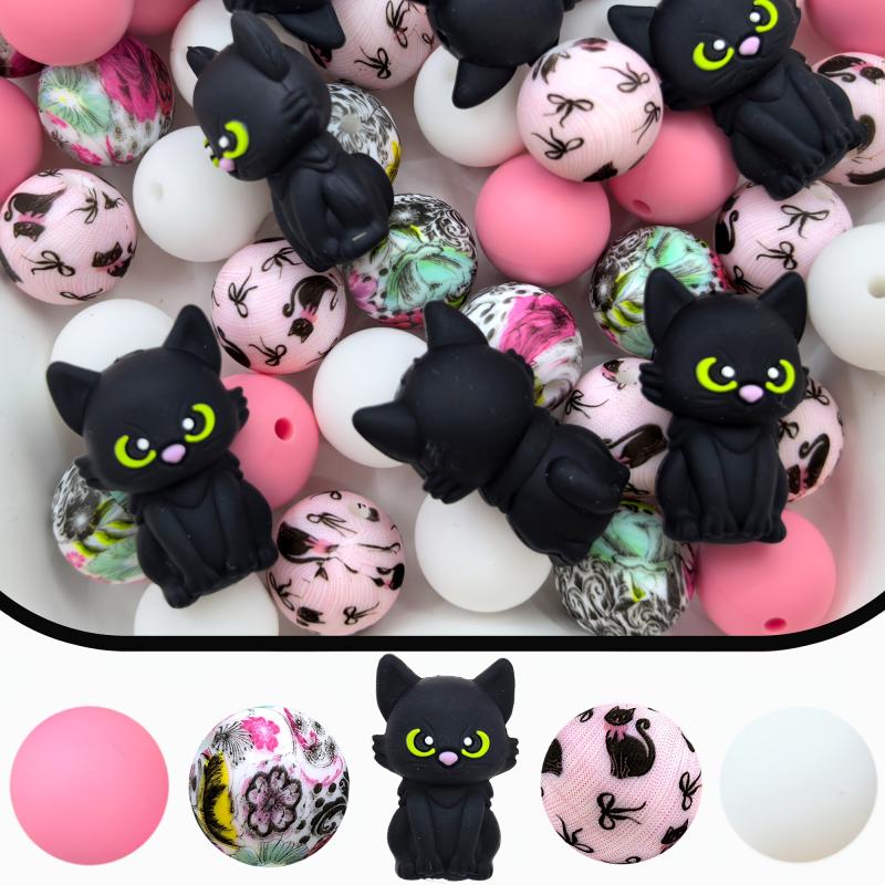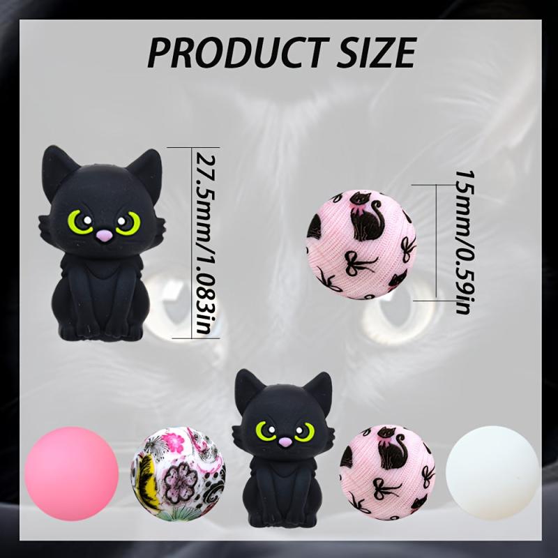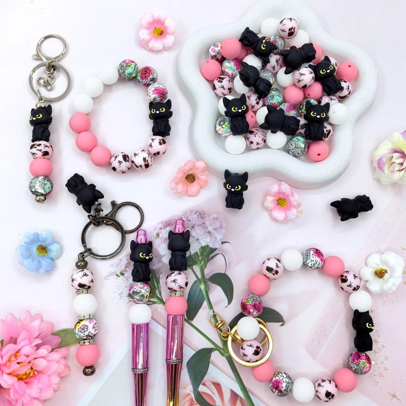 Enhance your crafting projects with this set of 25 silicone beads featuring cute cat and floral prints. Ideal for creating earrings, necklaces, bag charms, phone accessories, makeup brush holders, and keychains.