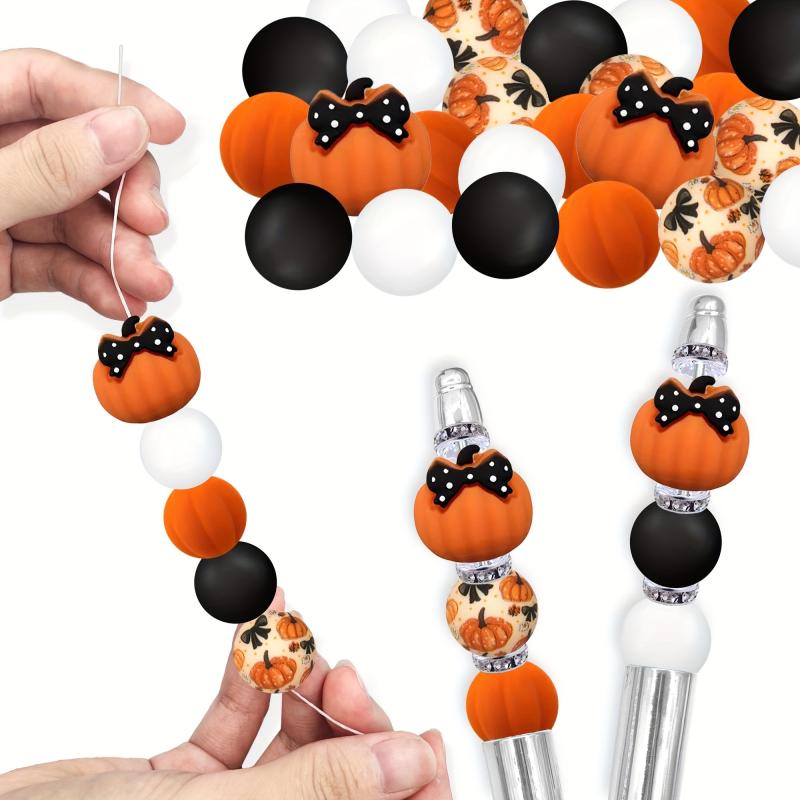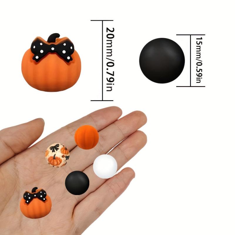 Add a touch of Halloween charm with these 25 silicone bow pumpkin beads featuring an orange round bead print. Perfect for creating unique jewelry pieces like earrings, necklaces, bag chains, and phone charms.