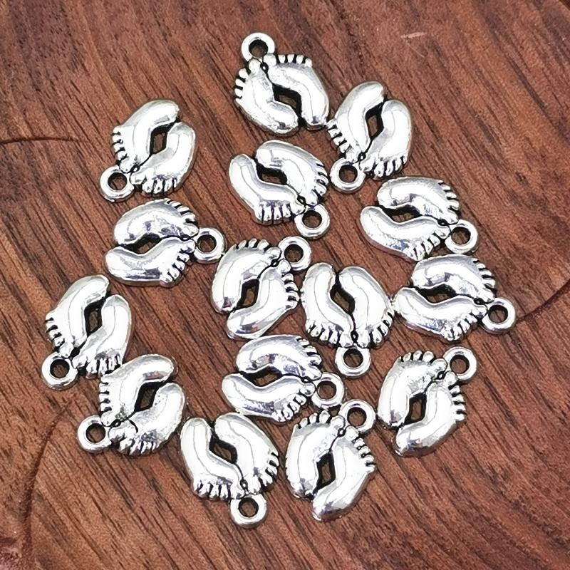 Enhance your jewelry making with these 27 small foot charm pendants in bohemian style. Perfect for creating unique bracelets, necklaces, and earrings.