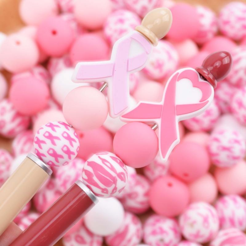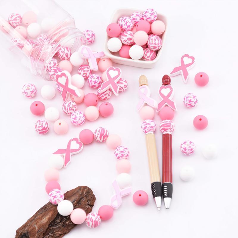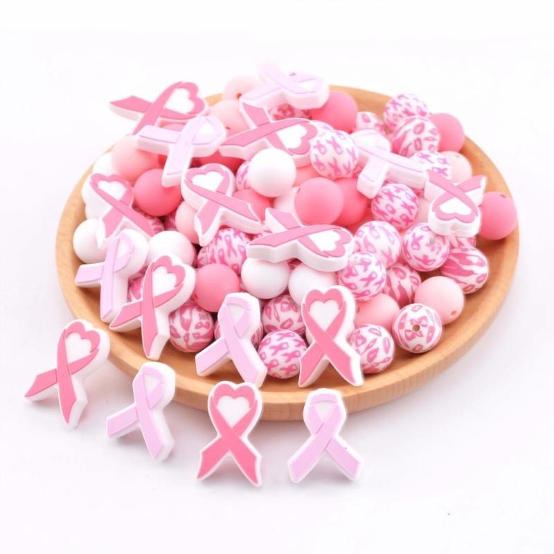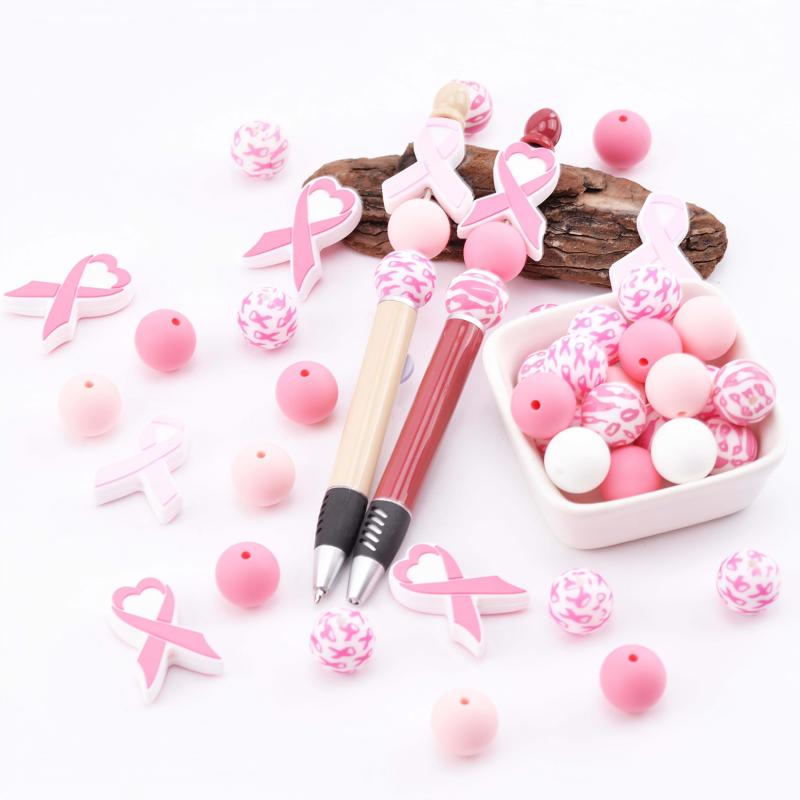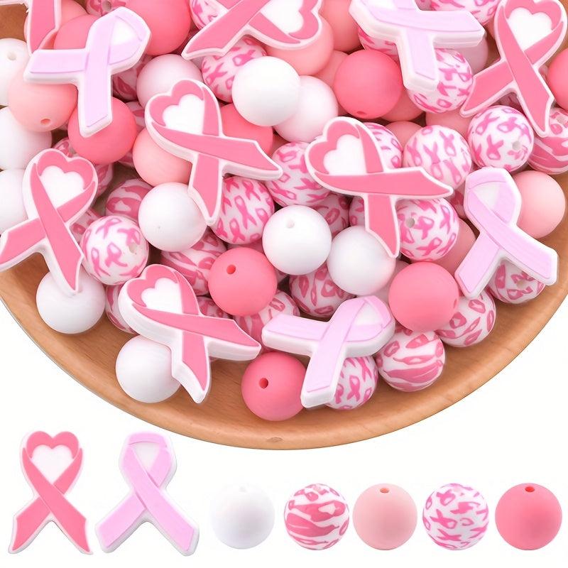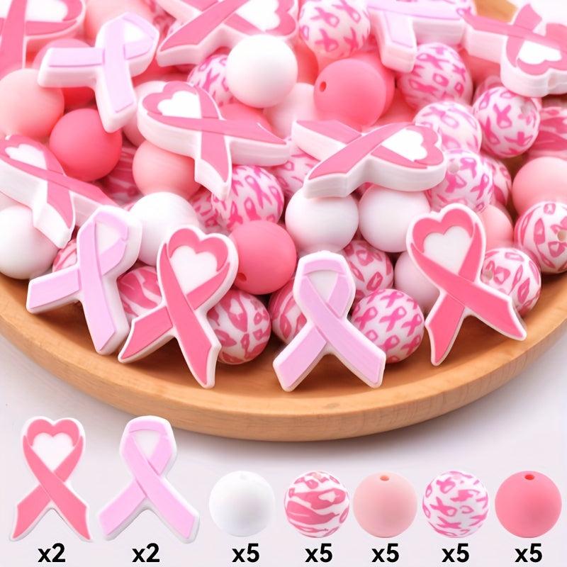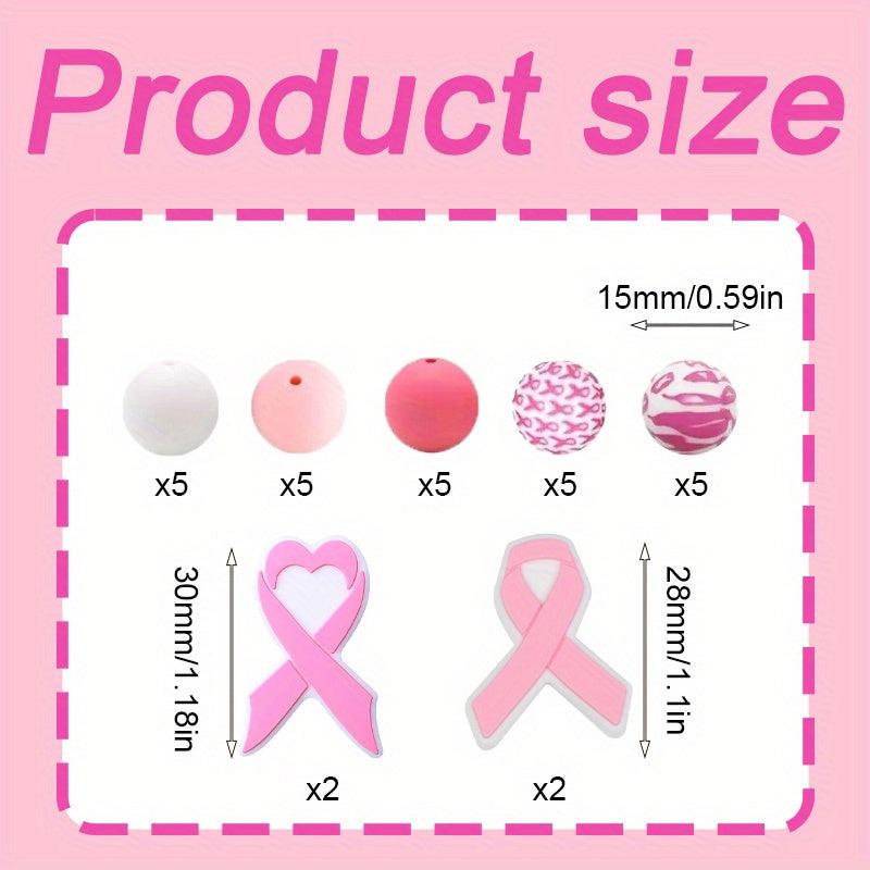 Create beautiful jewelry pieces and accessories with this 29-piece Pink Breast Cancer Awareness Ribbon Silicone Beads Set. Perfect for making keychains, mobile charms, and more.