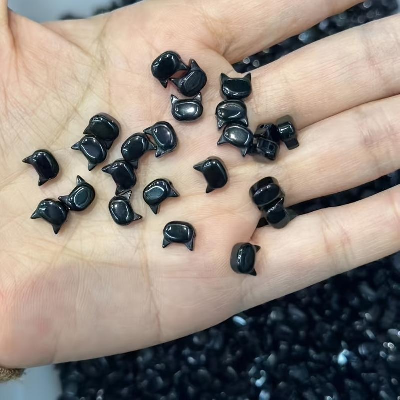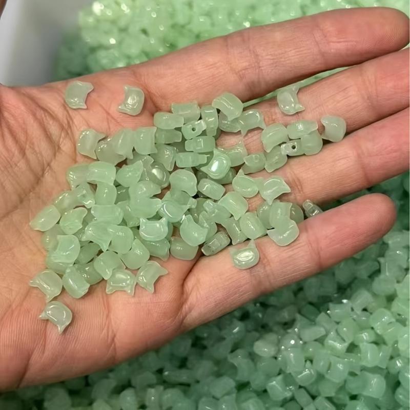 These adorable cat-shaped glass beads in light green are perfect for creating unique jewelry pieces like bracelets, necklaces, and earrings. Use them as animal charms or craft accessories for a fun touch to your projects.