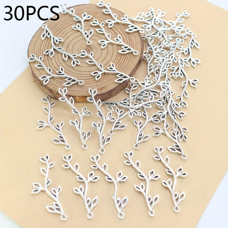 This set includes 30pcs of alloy floral branch connectors ideal for DIY jewelry making. The leaf charms can be used in various crafting projects.