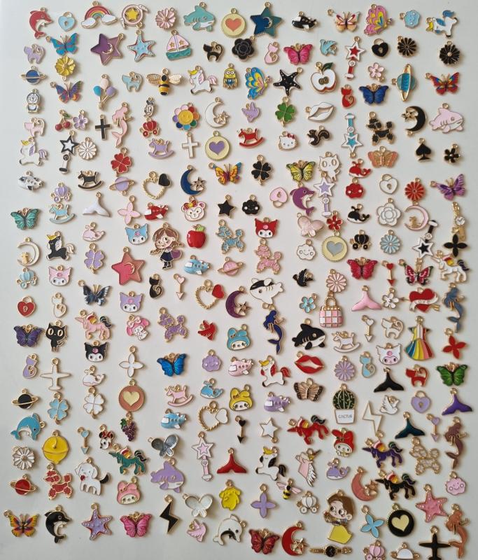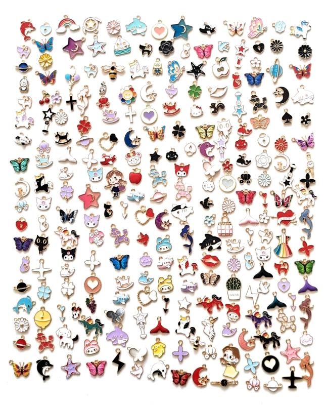 Enhance your DIY jewelry projects with this set of 33 enamel charms, perfect for key chains, earrings, necklaces, and bracelets.