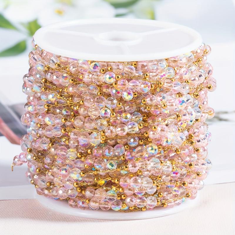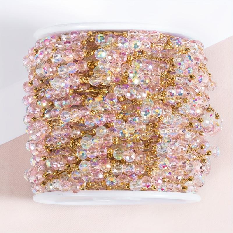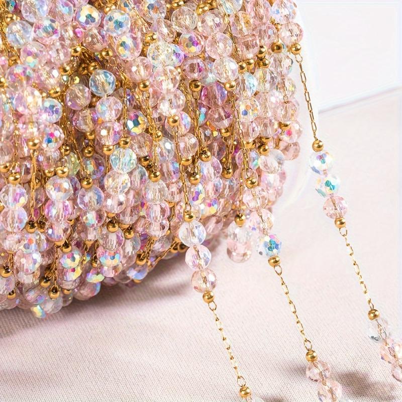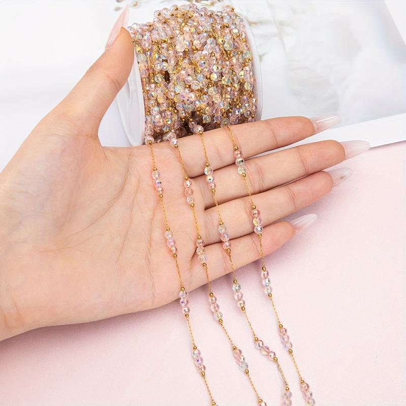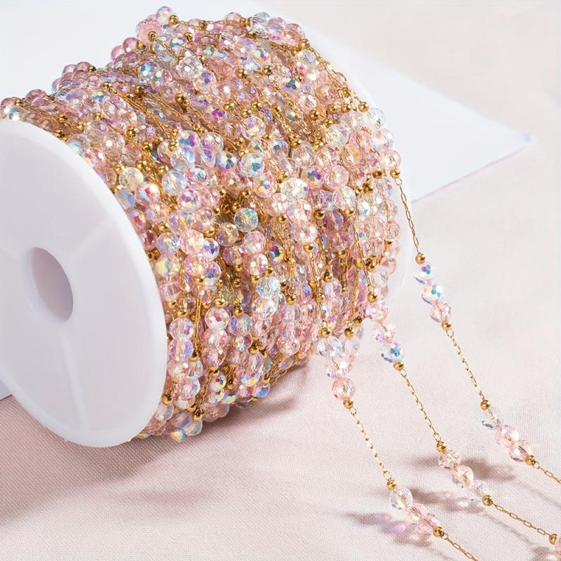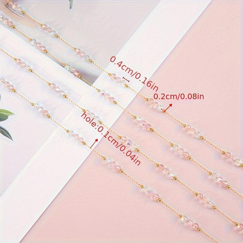 This stainless steel beads chain is 1m long and features 4mm artificial crystal beads, perfect for jewelry making.