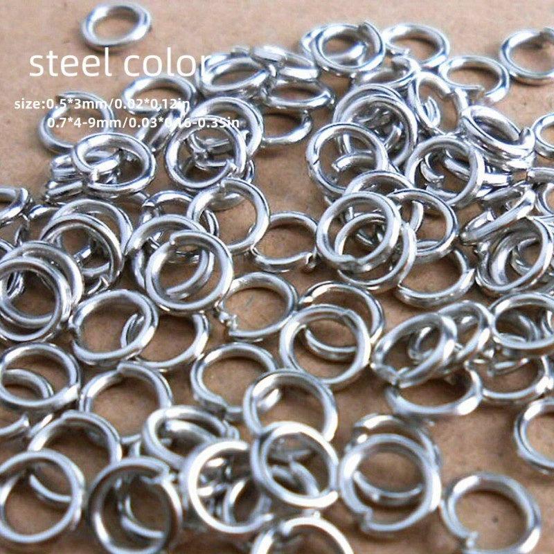 Easily create custom jewelry with this set of open jump rings in various sizes. Perfect for connecting components and adding charms to necklaces and bracelets.