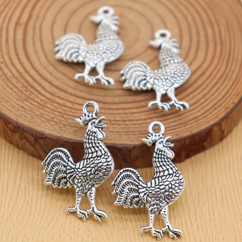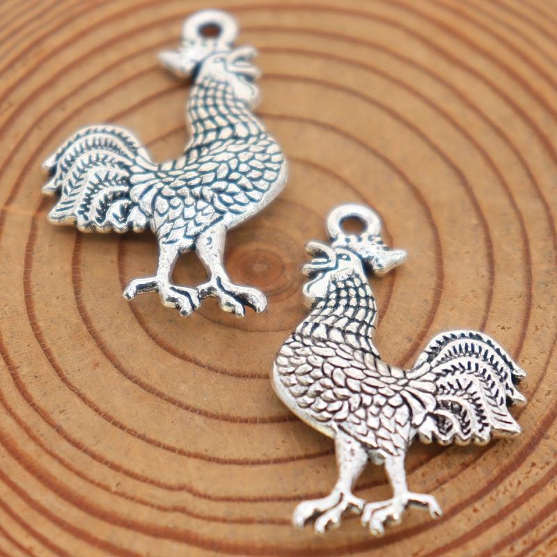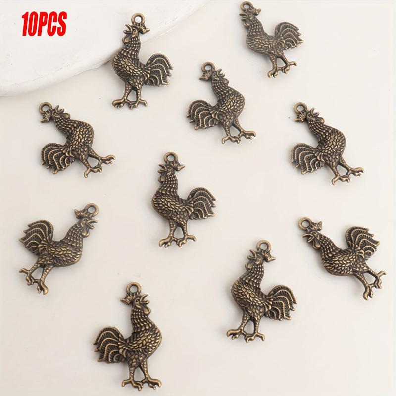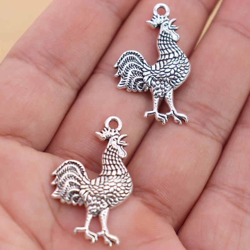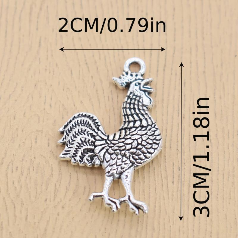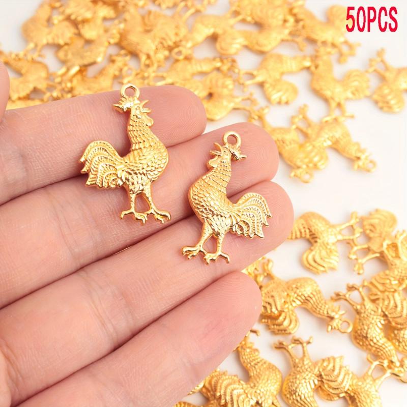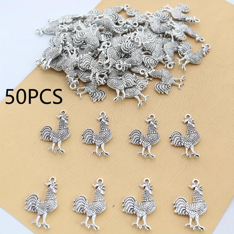 Get this set of 50pcs antique silvery, golden, and bronze 3D double sided texture rooster chicken pendants for your DIY necklace, bracelet, earring projects.