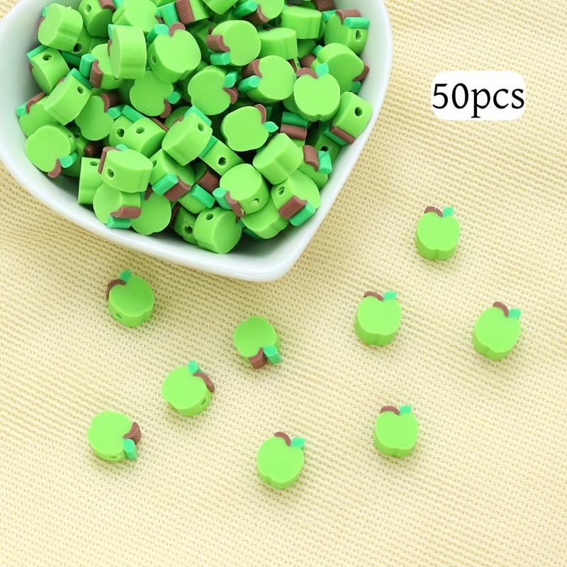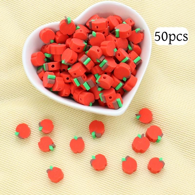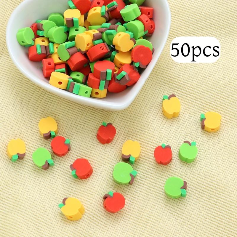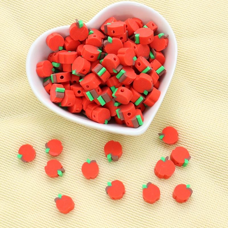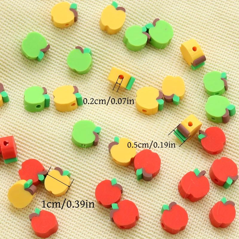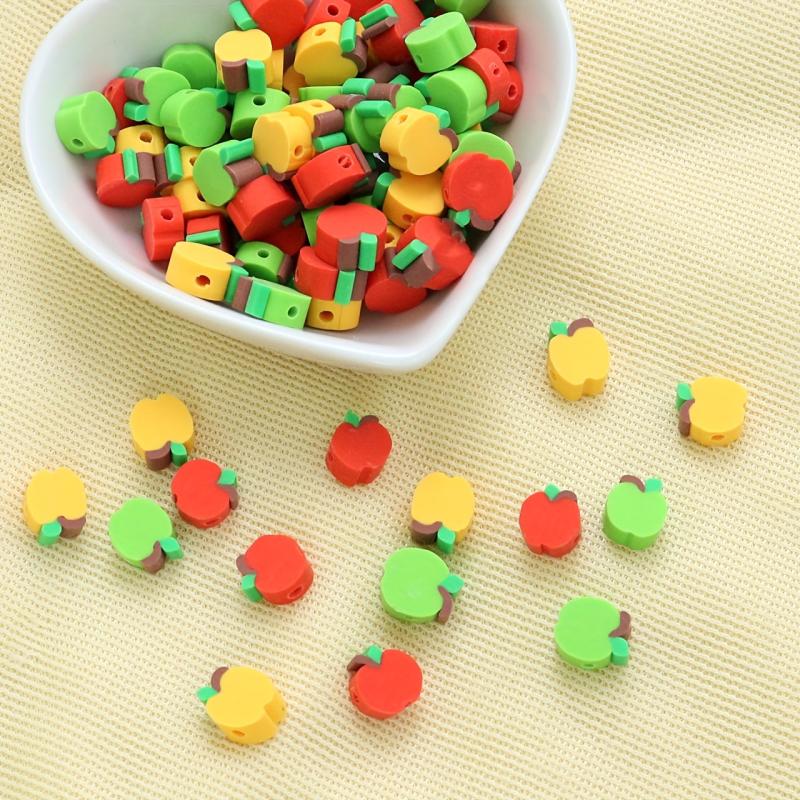 These vibrant apple shaped polymer clay beads are perfect for creating your own bracelets, necklaces, earrings, and other jewelry pieces. Add a pop of color to your creations with these red, green, and yellow beads.