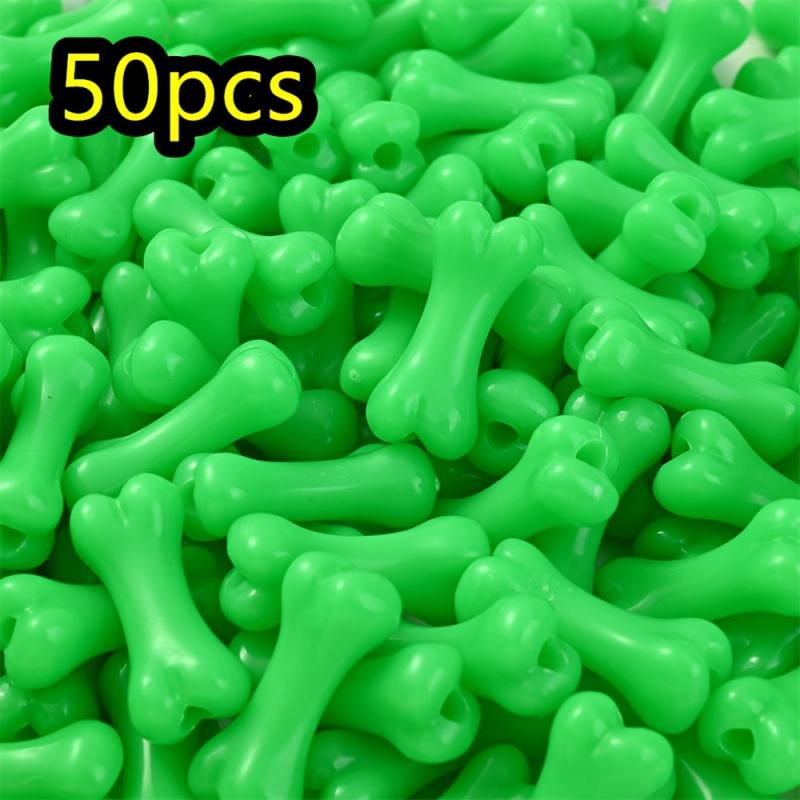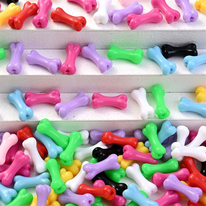 This set includes 50 Bone Shape Acrylic Beads measuring 9x20mm, perfect for creating DIY bracelets, earrings, and other jewelry accessories.