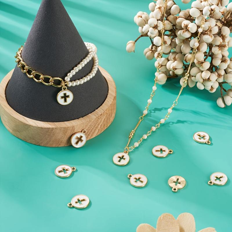 Enhance your jewelry making projects with this set of 50 enamel cross charms. Perfect for DIY bracelets and necklaces, these charms add a touch of elegance and spirituality to your creations.