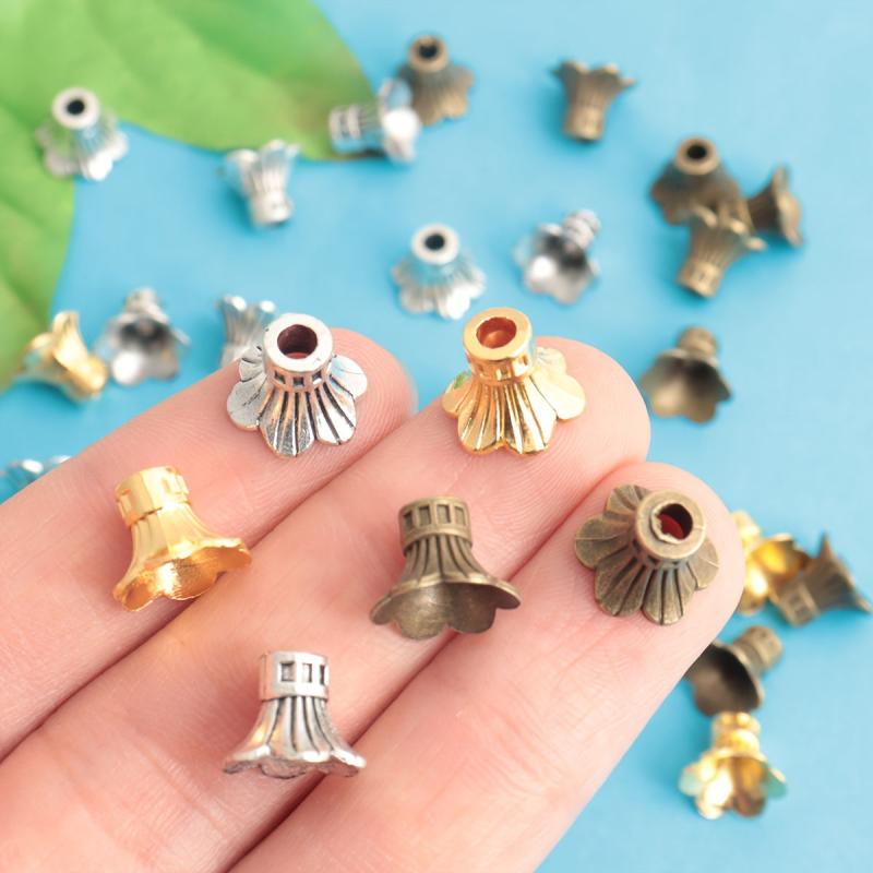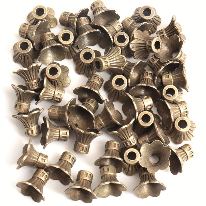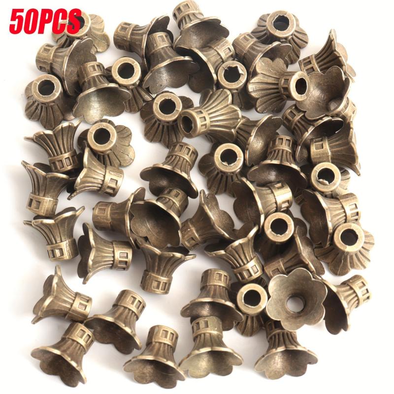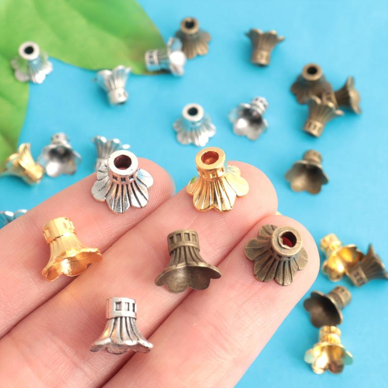 Enhance your jewelry creations with this set of 50 flower bead caps. Made of ancient silvery bronze, golden, and copper alloy, each cap measures 11 9MM. Perfect for adding a touch of elegance to your DIY projects.