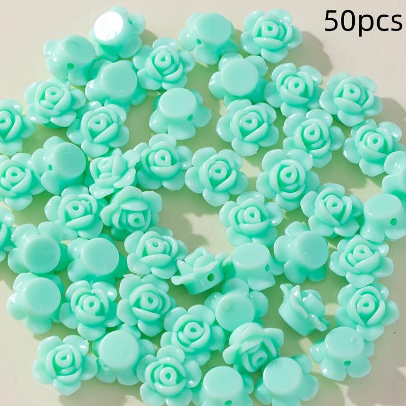 Create beautiful necklaces, bracelets, bangles, and keychains with this set of 50 mini colored rose and acrylic flower beads. Perfect for crafting unique and colorful jewelry pieces.