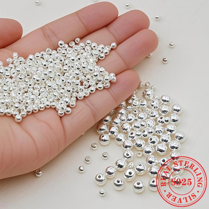 This pack contains 50 round S925 sterling silver spacer beads in multiple sizes, perfect for creating bracelets, necklaces, and anklets. Enhance your jewelry-making projects with these high-quality spacer materials.
